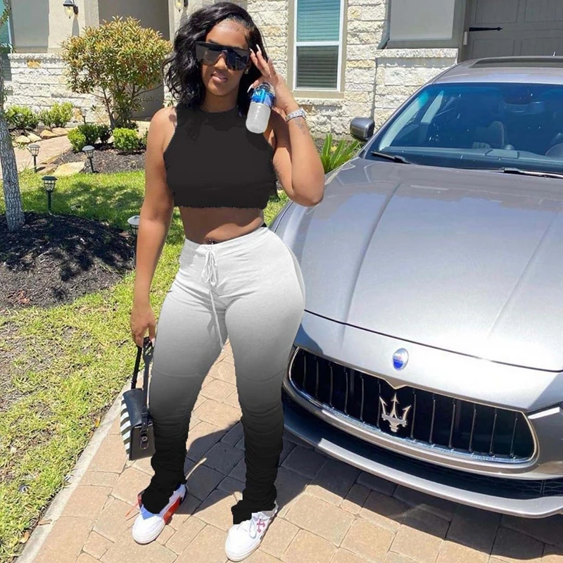 Спортивный костюм женский летний, укороченный топ и леггинсы, повседневная одежда для бега