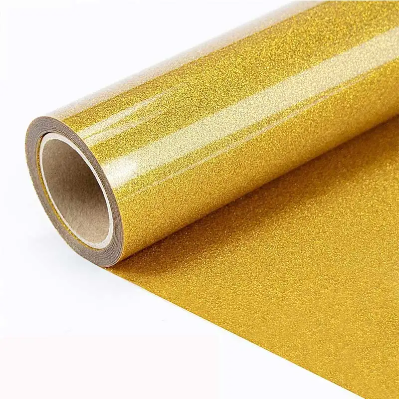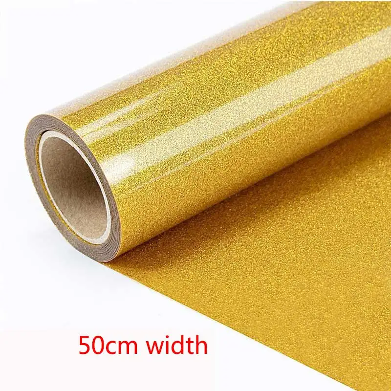 Блестящий виниловый тепловой трансферный рулон железная переводная Золотая виниловая HTV для футболок тепловой пресс декоративная пленка легко режущая трава винил оптовая продажа