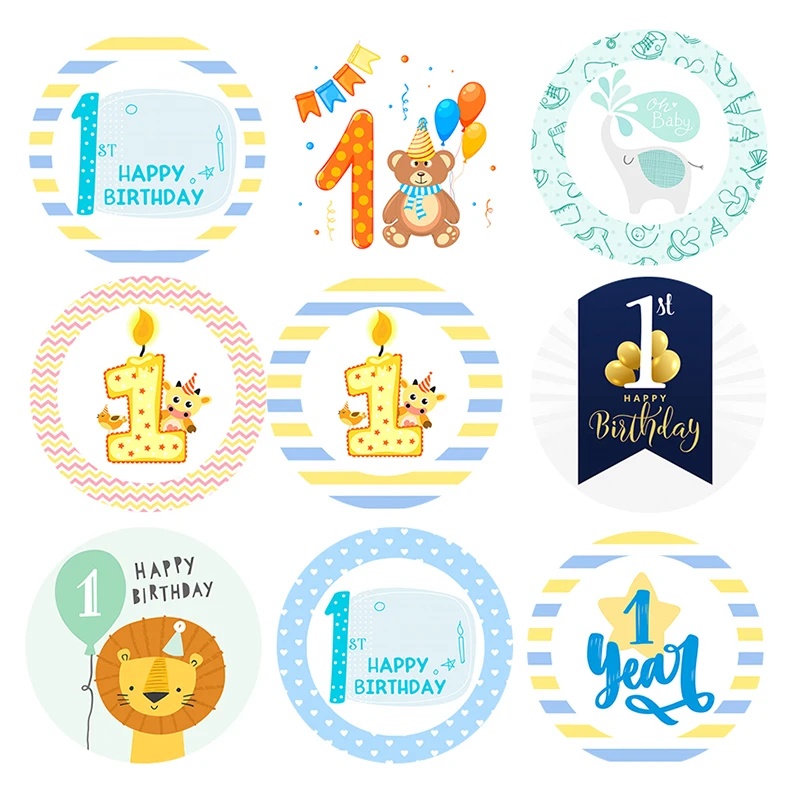 Наклейки на день рождения для мальчиков и девочек 1 год, украшение ...