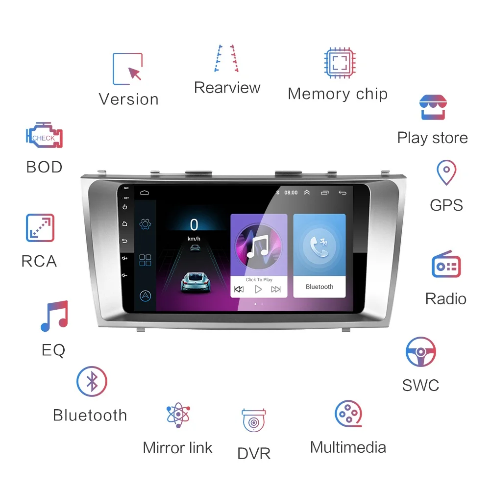 Подходит для Toyota Camry 2006-2011Только для справки, пожалуйста, подтвердите товар, если он соответствует вашему автомобилю перед покупкой. Операционная система: Android 10,1--- Подача заявки на новейшей ОС Android 10,1 4 ядерный процессор, 16/32 ГБ, Встроенная память, 1/2 ГБ Оперативная память,Емкостный сенсорный экран, WiFi,GPS, функция вызова, без CD DVD плеера и т. д.☆Android 10,1 (4 ядра), задачи быстро и без затруднений!• 16/32 ГБ флэш-памяти, магазин многочисленных приложений, игр с Android Market!☆Gps-навигация: с голосовым управлением, поддержка 2D/3D карты.☆Функция вызова готова: вы можете подключиться к мобильному телефону,Также отвечайте на телефонные звонки бесплатно.☆ WIFI: встроенный WIFi☆ Система радиопередачи данных: fm-тюнер☆Поддержка зеркальной связи: Поддержка смартфонов iPhone и Android☆Поддержка управления рулевым колесом: Сделайте ваше вождение более безопасным и легким☆Гарантия: гарантия 1 год