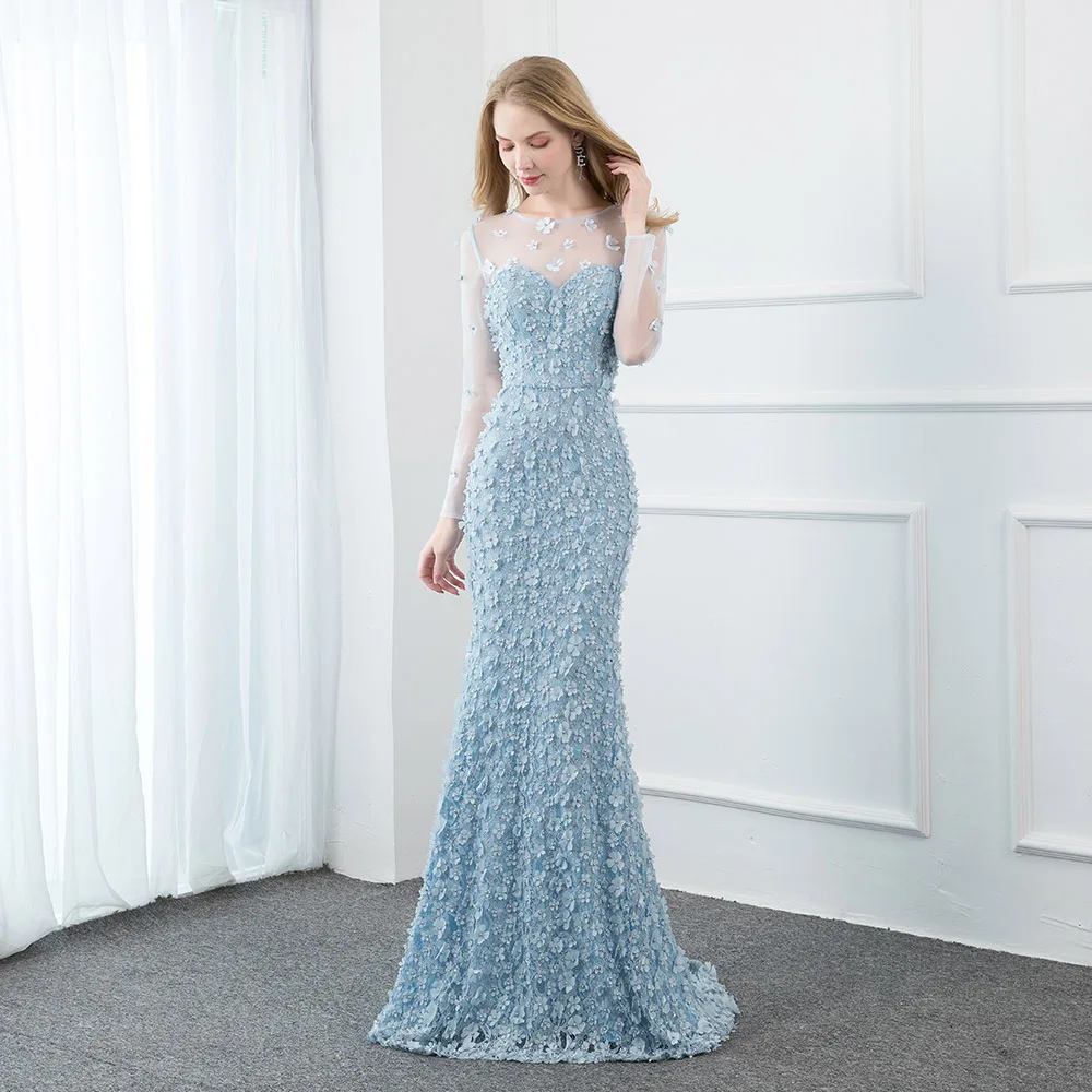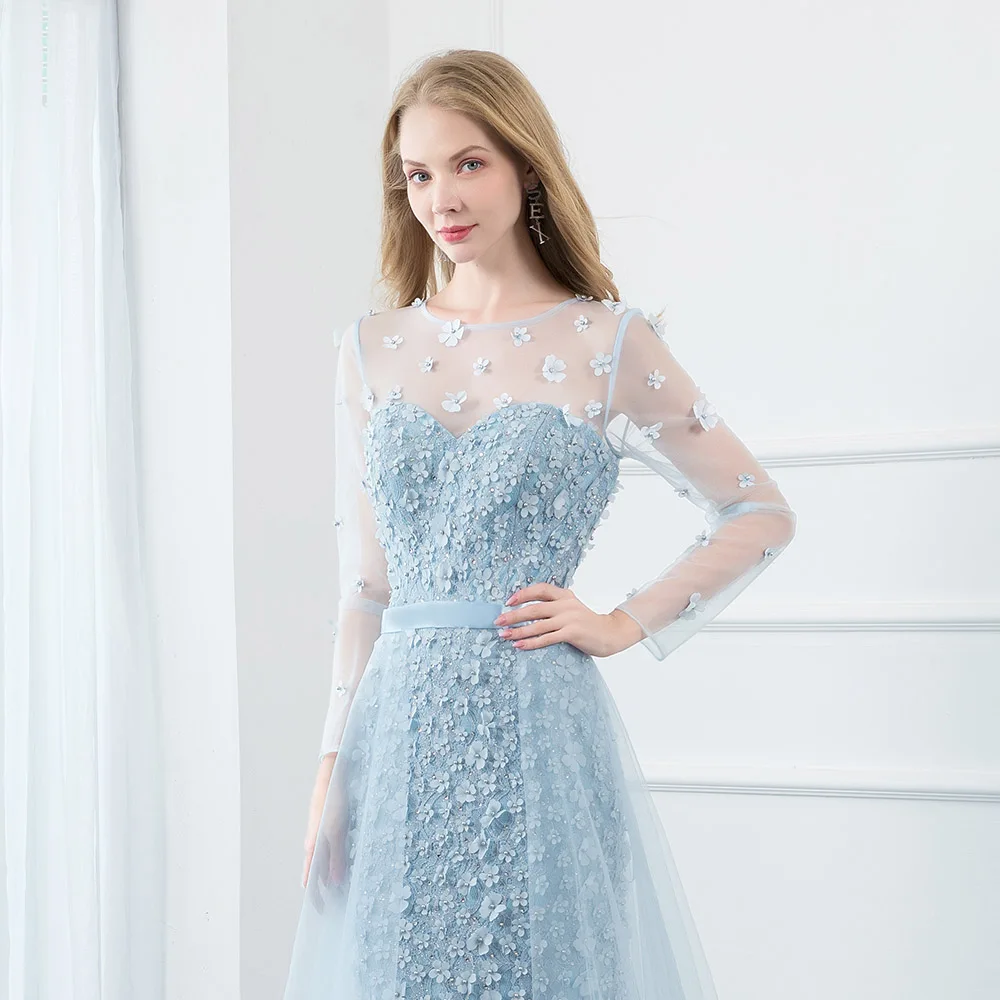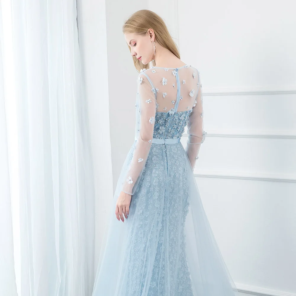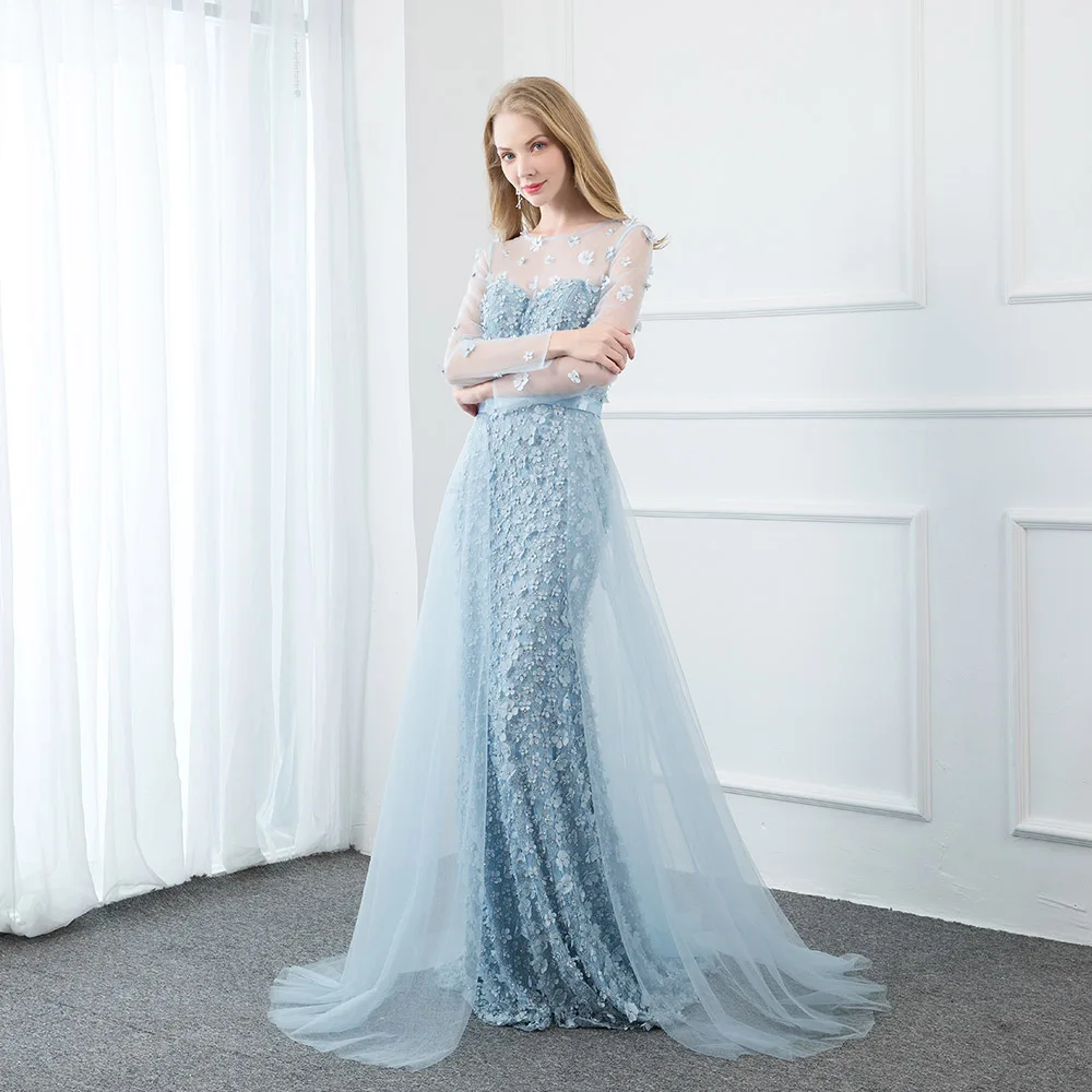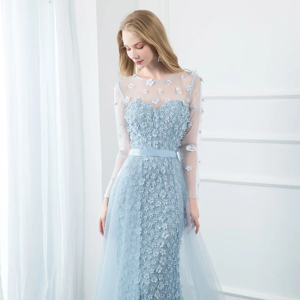 Женское вечернее платье с длинным рукавом Sweet, длинное фатиновое платье со шлейфом и объемными цветами, расшитое бисером, в наличии