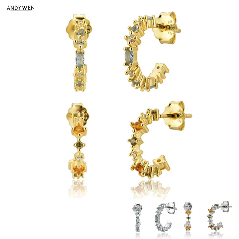Женские мини-серьги-гвоздики ANDYWEN, из 100% серебра 925 пробы с р...