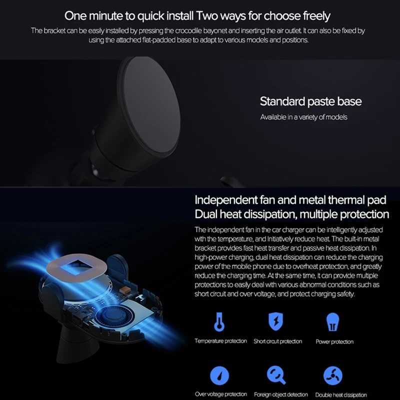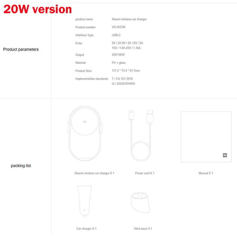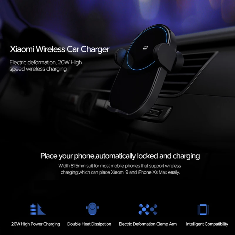Mi 20W беспроводное автомобильное зарядное устройствоЭлектрическая регулируемая ручка, 20 Вт Мощная Вспышка для зарядки Ваш автомобиль-Мобильная зарядная станция Независимо от того, ездит ли он в шумном городе или по загородной дороге в выходные дни, когда требуется мощь мобильного устройства, быстрая зарядка автомобильного зарядного устройства Xiaomi может безопасно и быстроПополняйте мощность устройства, позвольте вашему автомобилю стать мобильной зарядной станцией и сопровождать вас по пути. Максимальная мощность до 20 Вт Ломает запись, установленную беспроводной зарядной панелью Mi *Идеально подходит для вождения с мощностью 20 Вт. Возможность зарядки Mi 9 от 0 до 45% в 30 mi nutes и полной мощности всего 90 mi nutes.* * Поддержка 10 Вт Беспроводная Быстрая зарядка Xiaomi Mi MIX 3, 7,5 Вт Беспроводная Быстрая зарядка Xiaomi Mi Mix 2S, и Беспроводная зарядка для iPhone X.