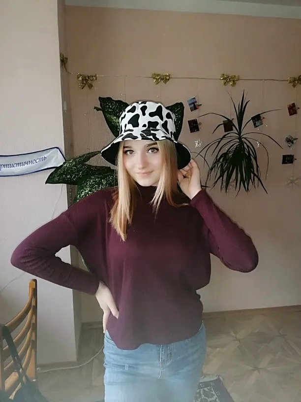 Панама МужскаяЖенская, складная, с двусторонним узором в виде коровы, черно-белого цвета, летняя
