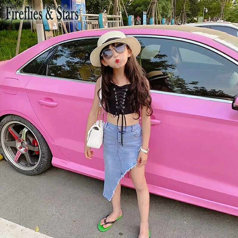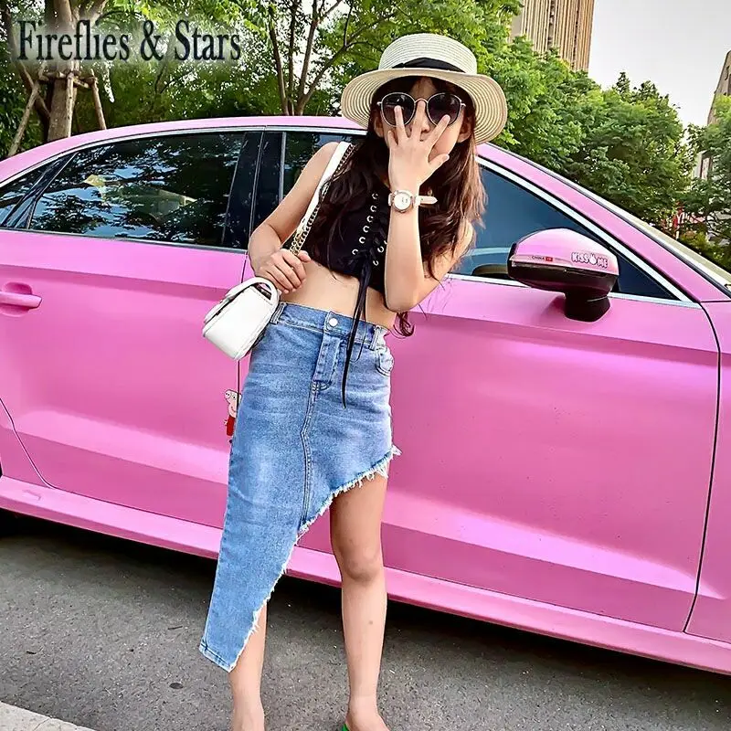 Джинсовая юбка для девочек 4-11 лет, с разрезом сбоку