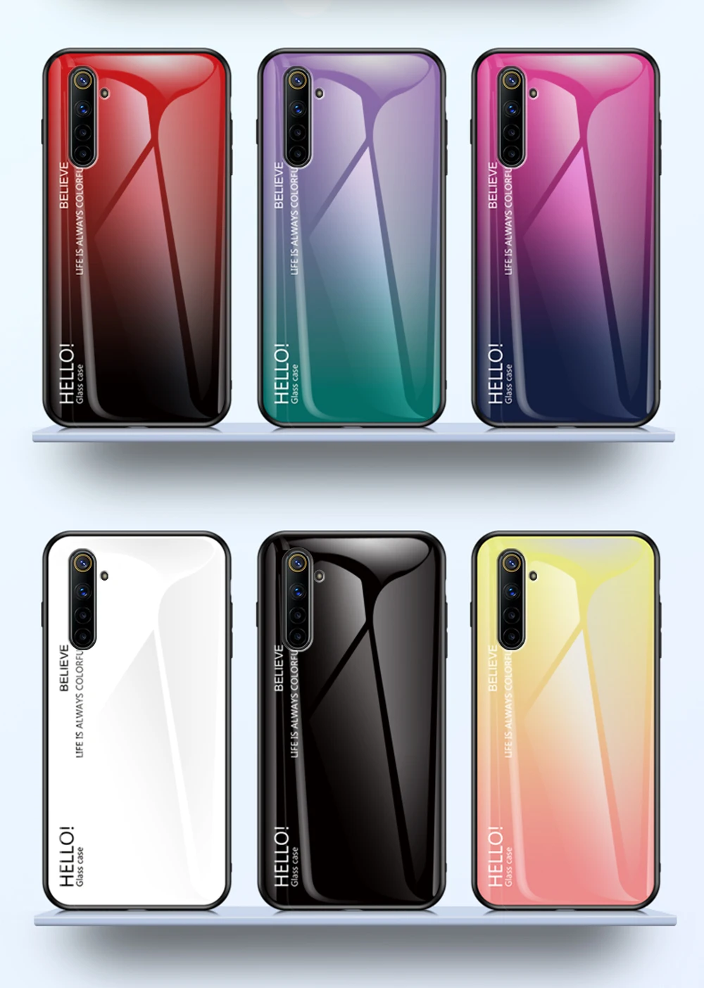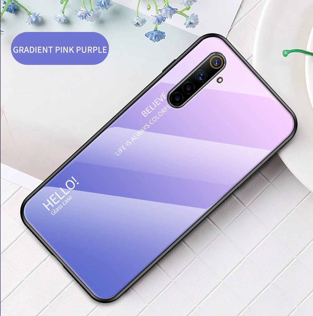 Для OPPO Realme 6 чехол Роскошный Жесткий закаленное Стекло градиен...