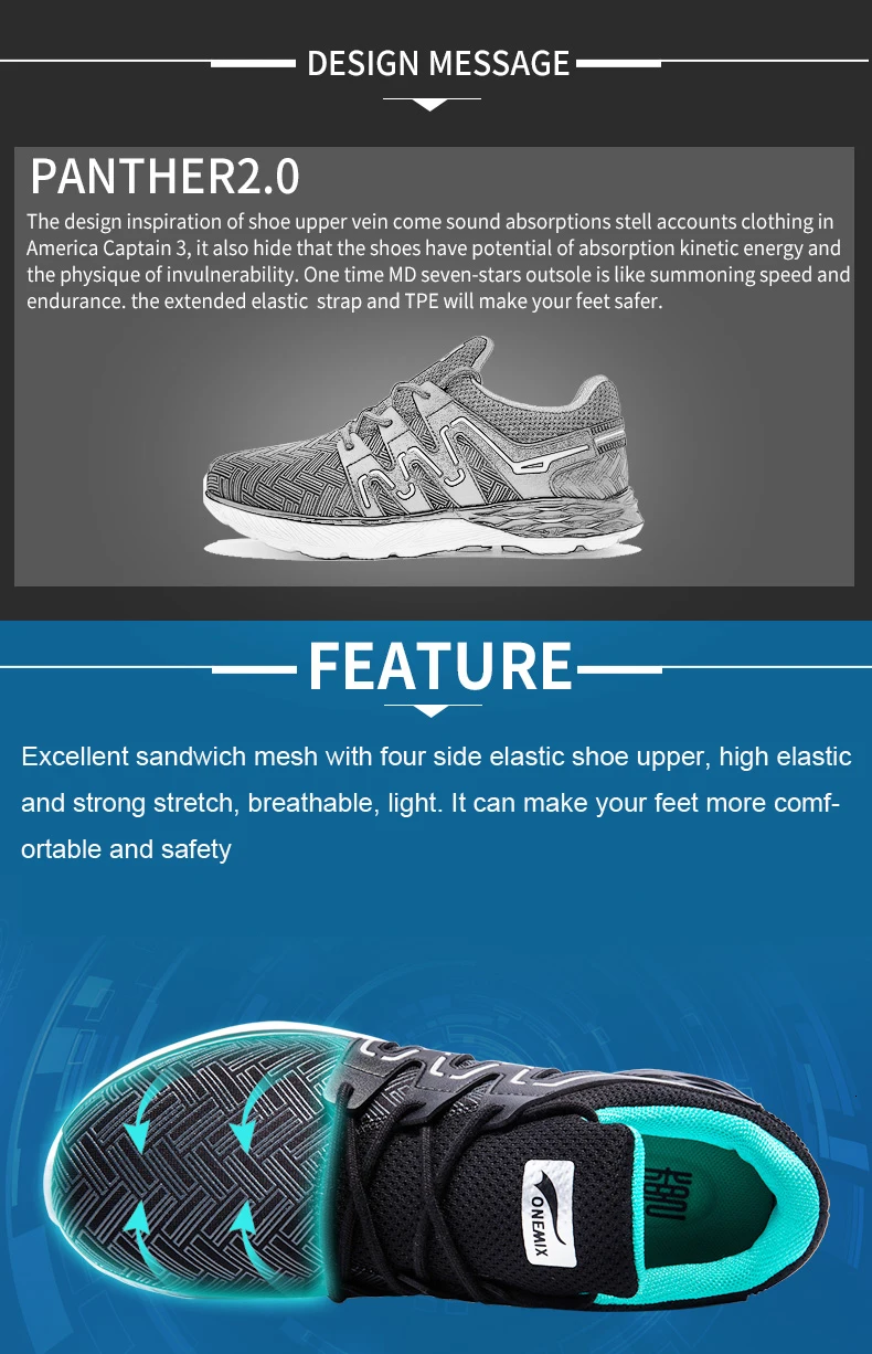 Бренд: ONEMIXСтиль: Пантера 2.0 кроссовкиМатериал верха: сэндвич-сеткаМатериал подошвы: MD + TPE + RBСтиль: Модный