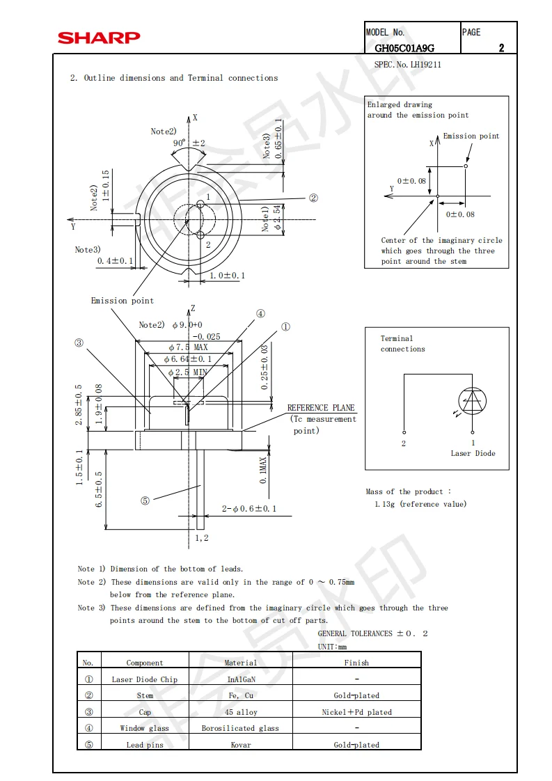Диод лазерный SHARP GH04C05B9G, 9 мм, синий, 440 нм, 445 нм, 5 Вт