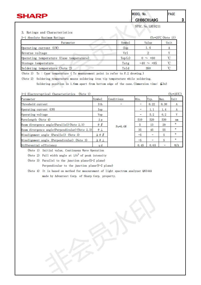 Лазерный диод Sharp GH05C01A9G, зеленый, 520nm, 600 мВт, для проекторов RGB (Pulse 1W)
