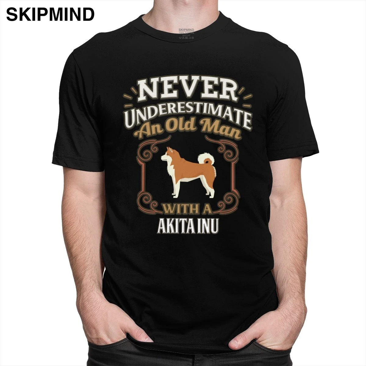 Футболка мужская с надписью Akita Inu, тенниска с круглым вырезом и короткими рукавами, повседневная майка с японской собакой для влюбленных, хлопковая майка