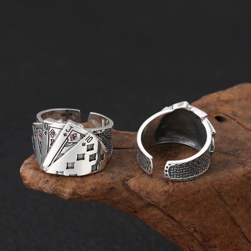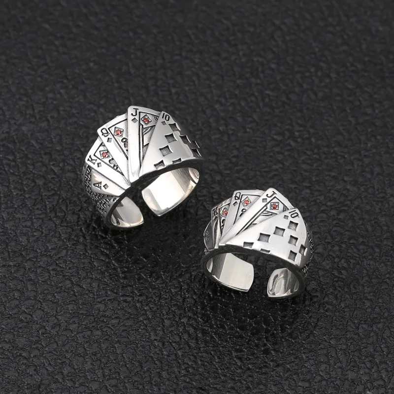 Покерные хипстерские кольца с изменяемым размером, серебряные хипстерские кольца для влюбленных, S925, антиаллергические Регулируемые кольца для покера