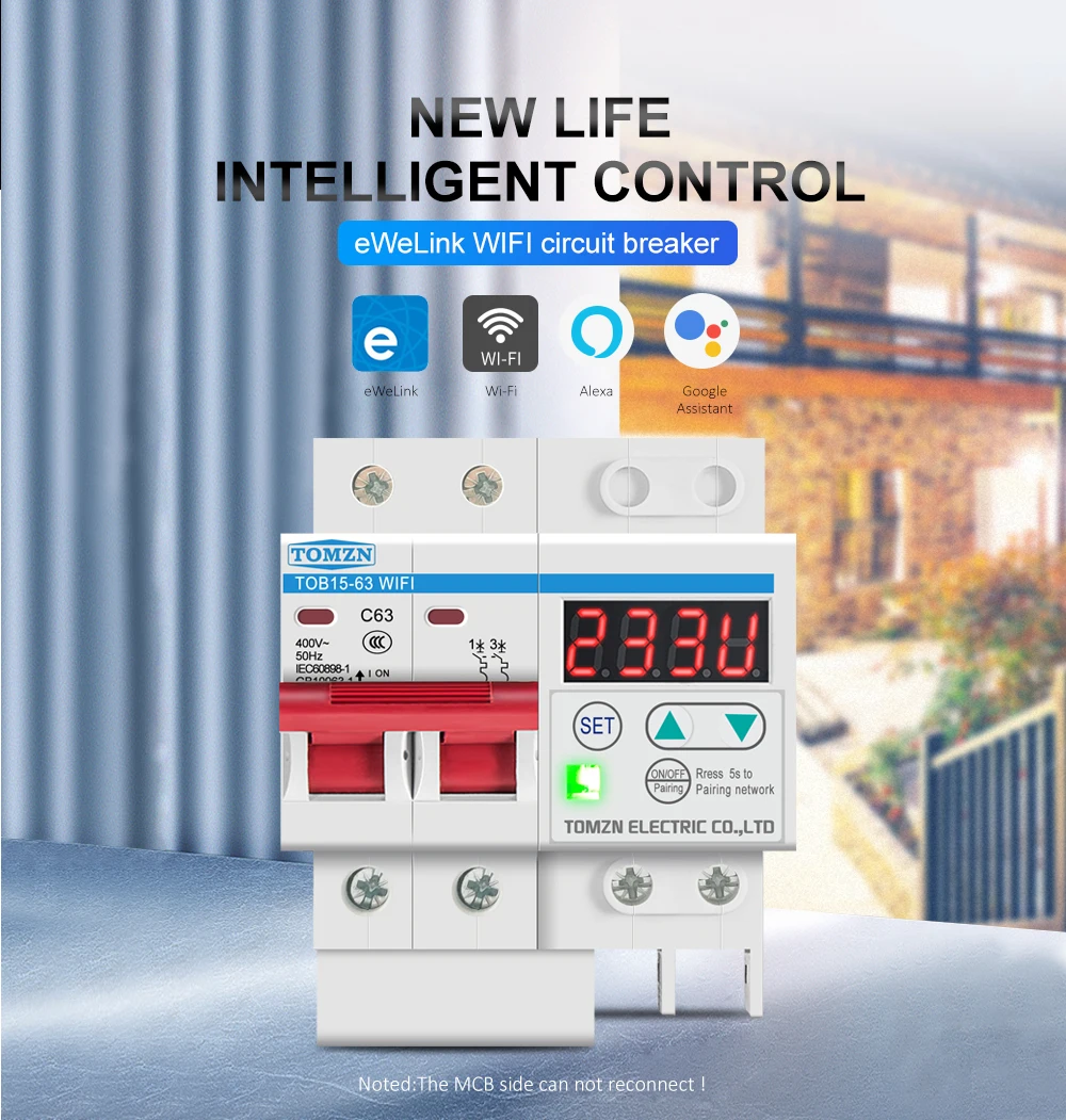 Смарт-выключатель ewelink, 63A, с защитой от повышенного и пониженного напряжения, ЖК-дисплеем