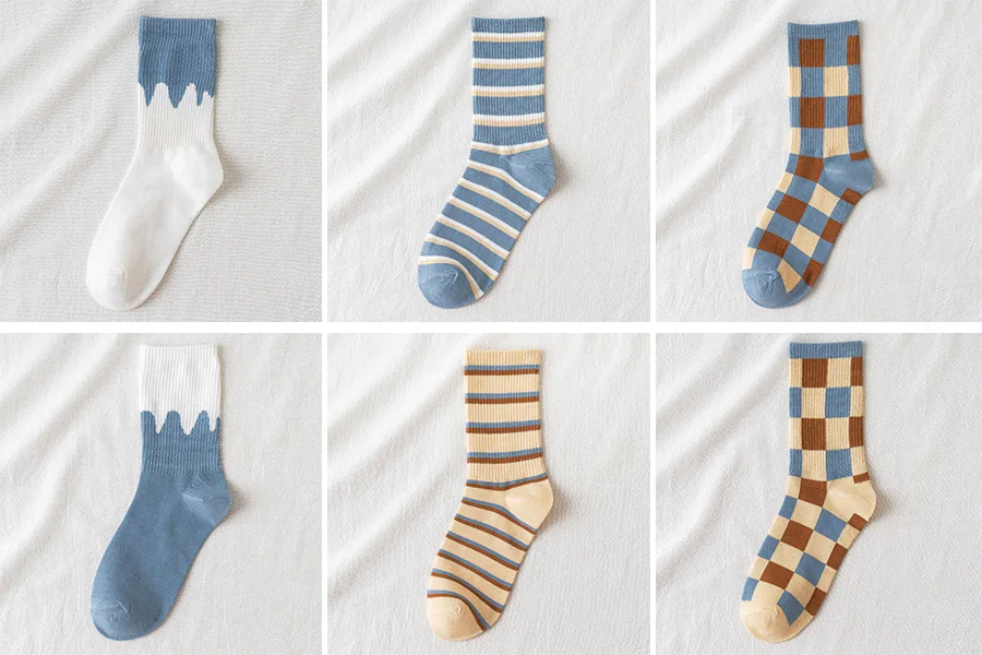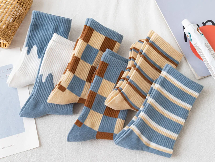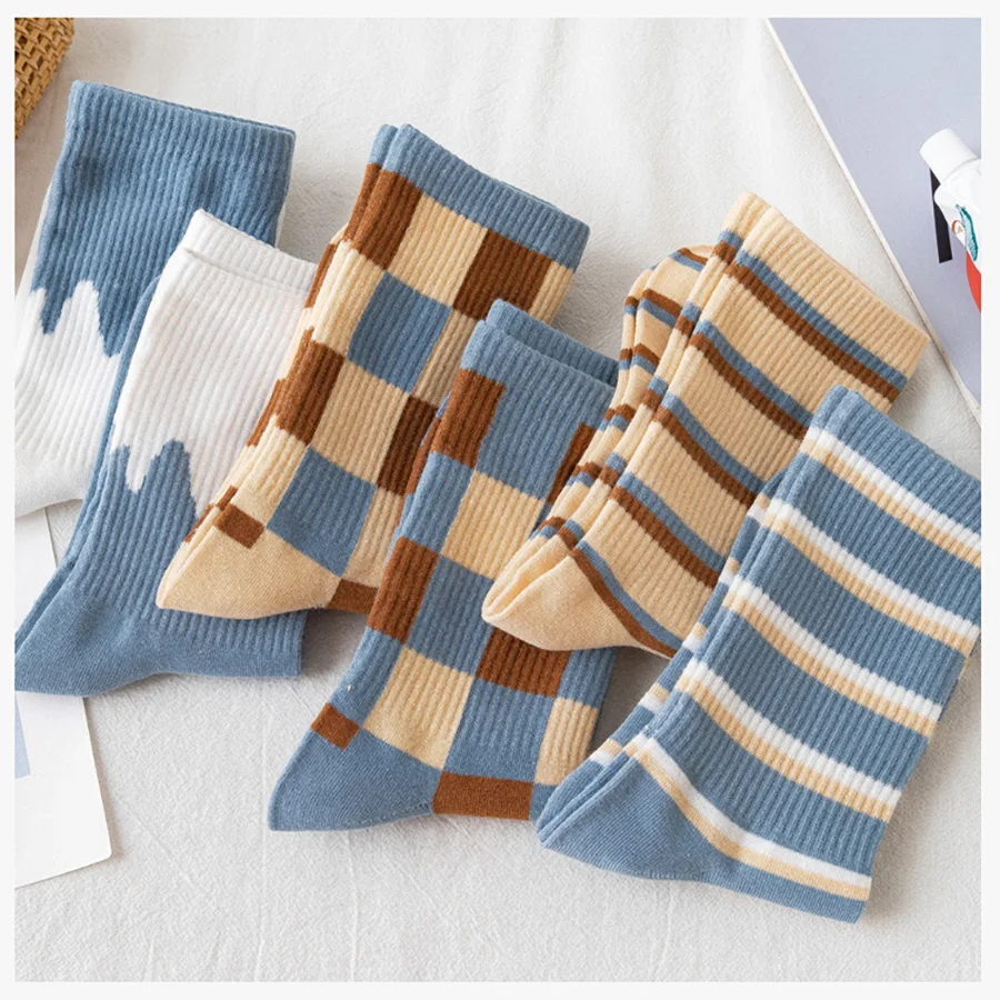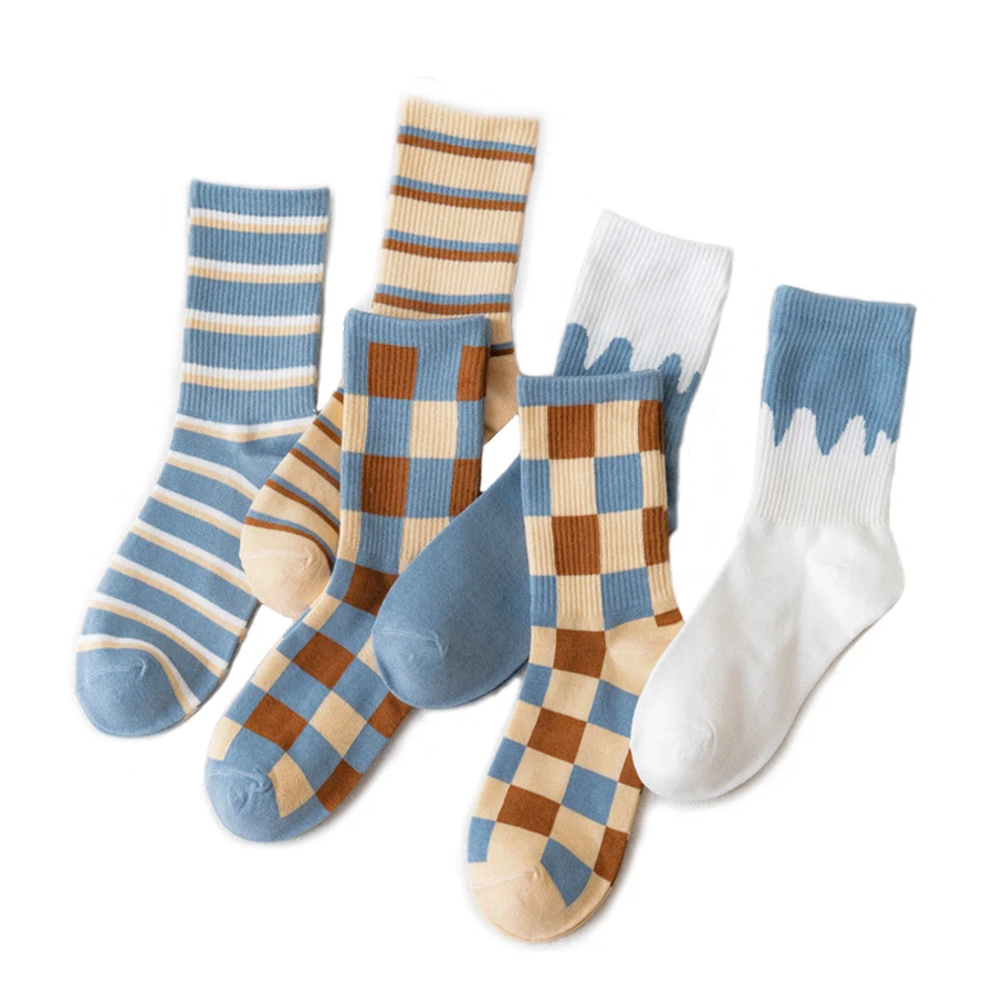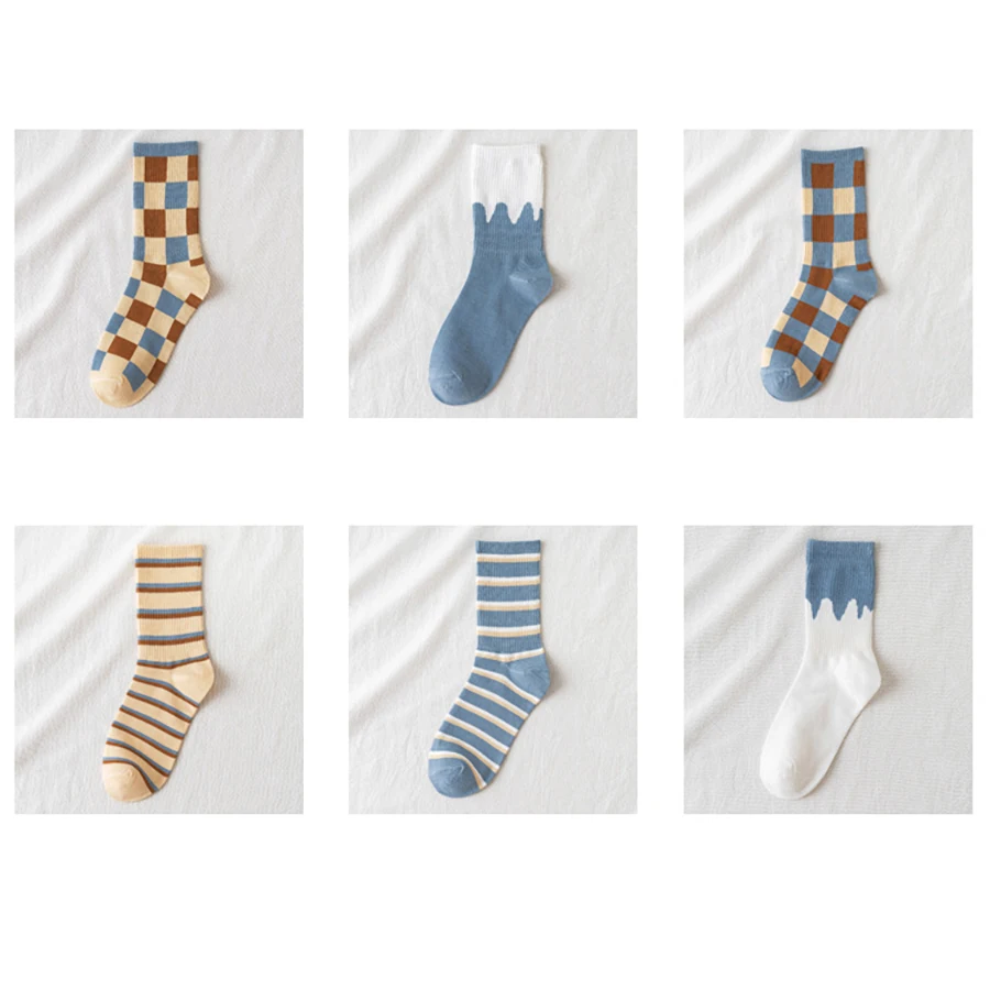 Носки Женские Классические хлопковые, Элегантные короткие носки в клетку и полоску, разные цвета, голубые хаки белые, в ретро стиле