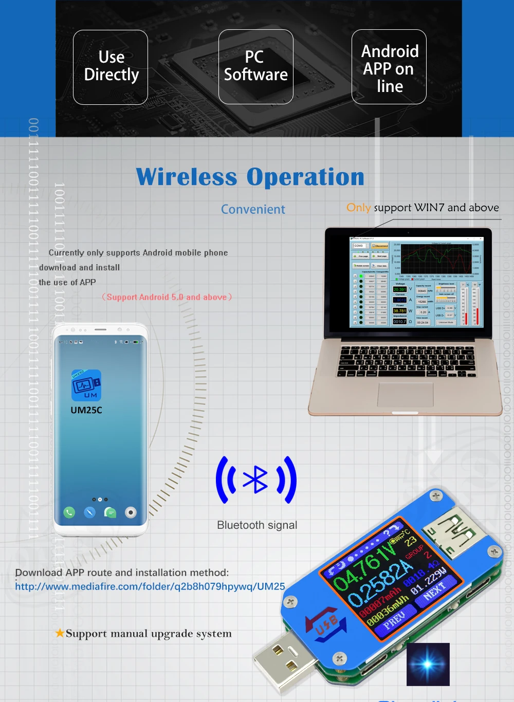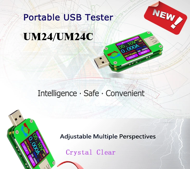 UM24 UM24C APP USB 2.0 ЖК-дисплей Вольтметр Амперметр заряда аккумулятора измеритель тока мультиметр измерительный кабель тестер