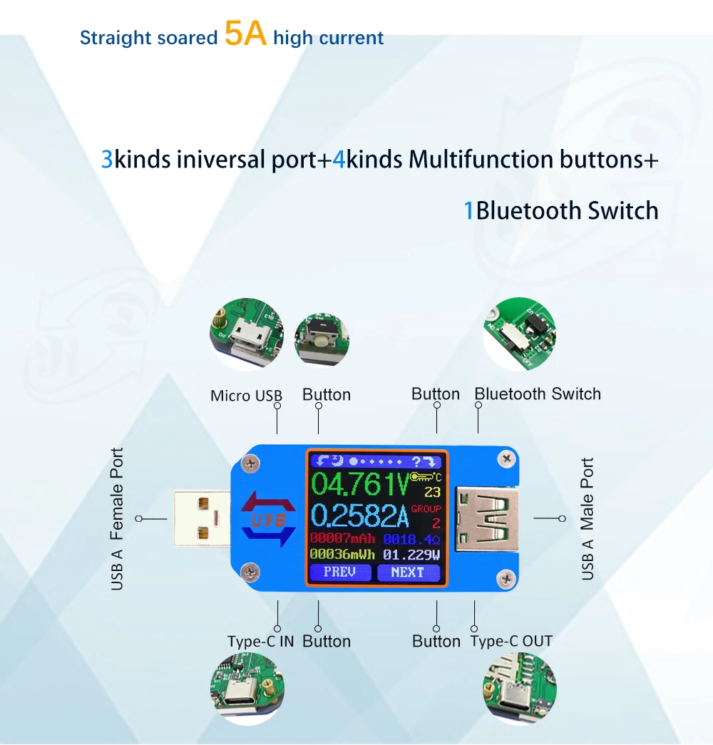 Вольтметр постоянного тока UM34UM34C UM24UM24C UM25UM25C, амперметр, тестер напряжения, тока, зарядка аккумулятора, USB-тестер LD25LD35 TC66