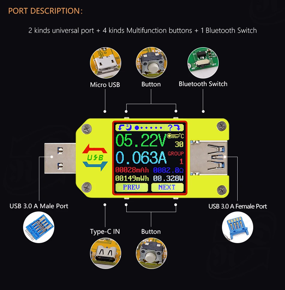 UM34 UM34C Для APP USB 3.0 Тип-C DC Вольтметр Амперметр Напряжение измеритель тока, для батареи зарядки измерения Кабельный тестер сопротивления