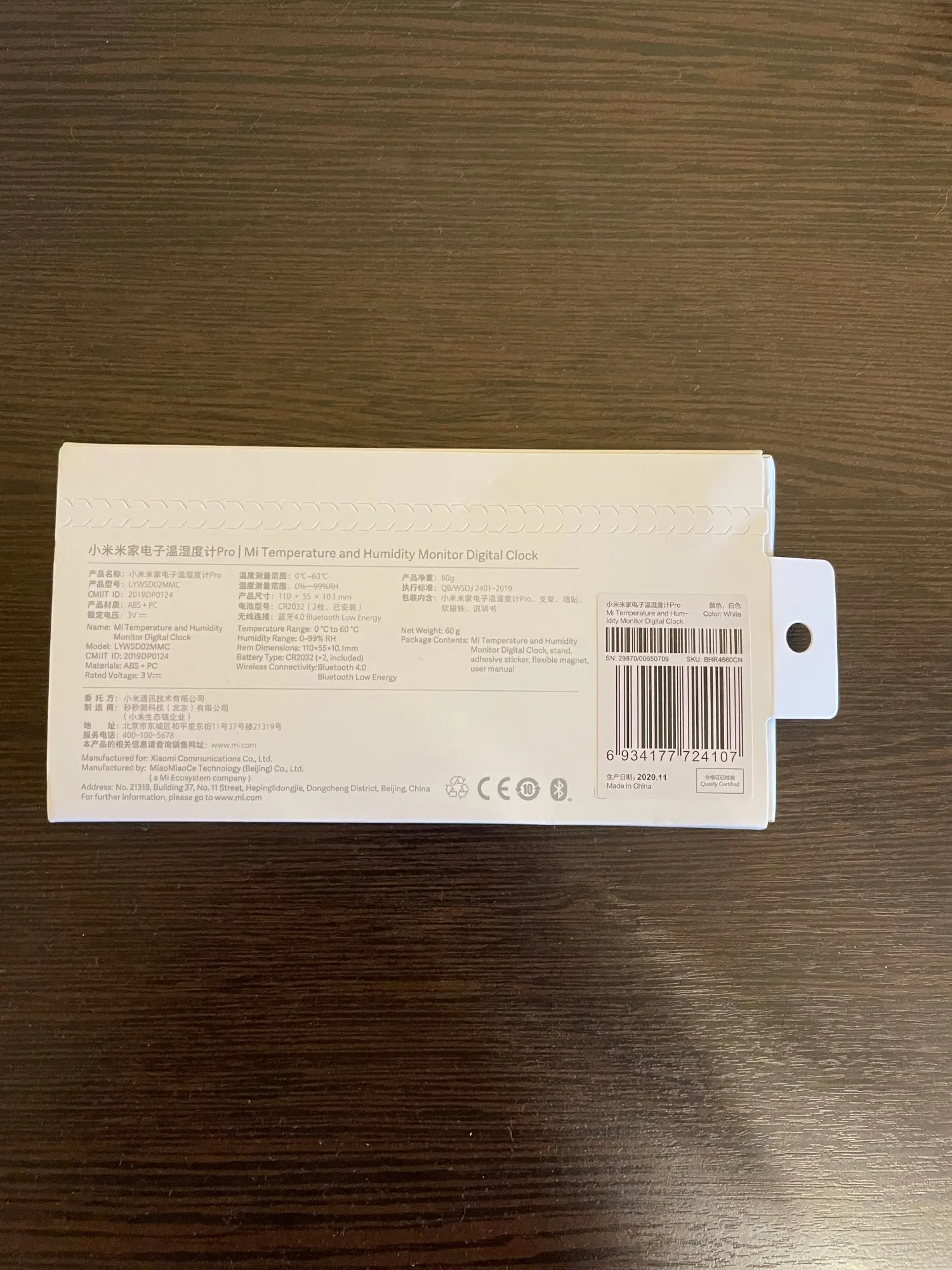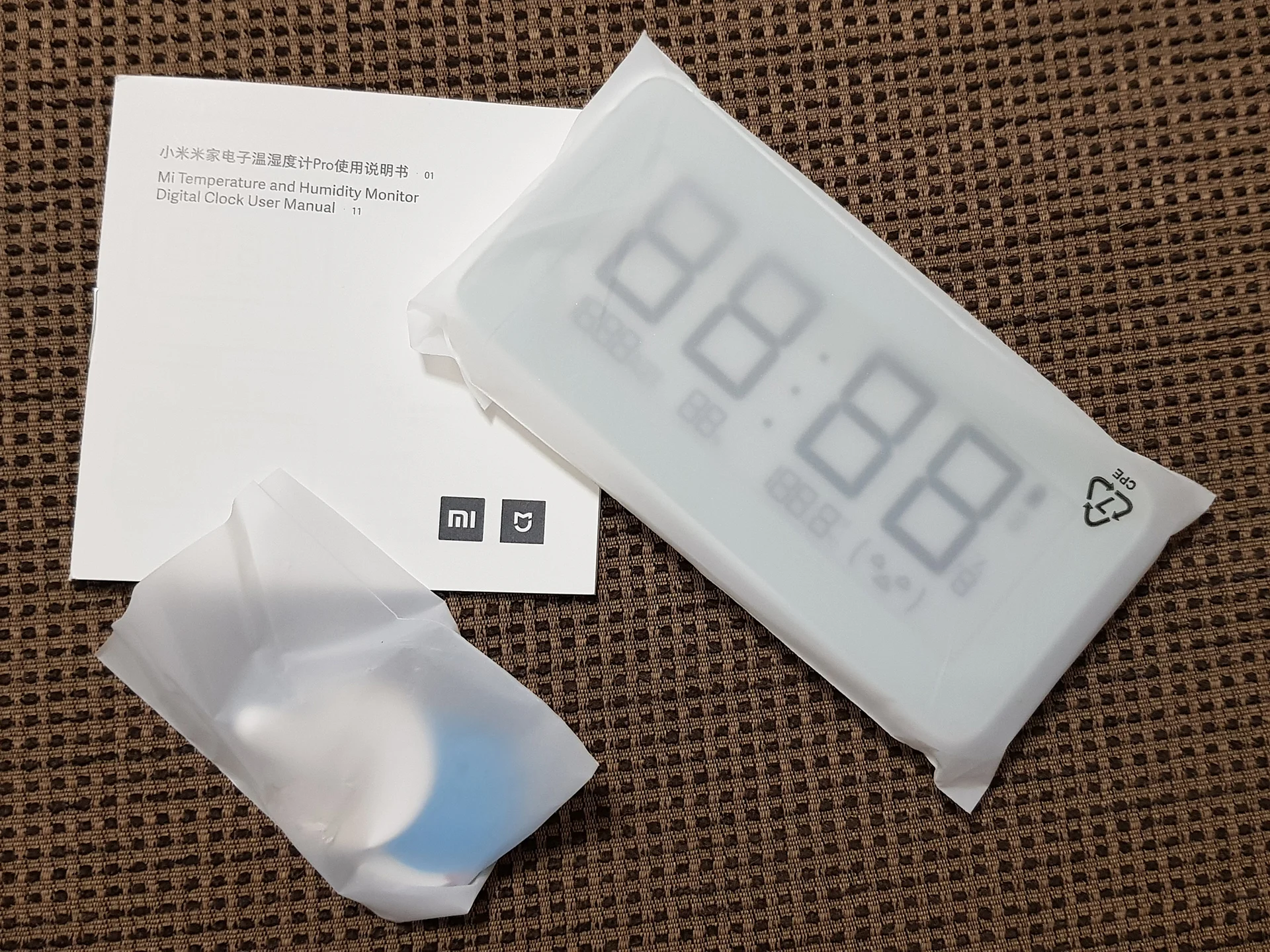 Посылка получена через 22 дня. Упаковка - плотный пупырчатый пакет, и не смотря на это фабричная коробка была изрядно помята, но часы не пострадали. Для установки часов в комплекте три варианта крепления - ножка, магнит и просто липучка. Батарейками 2032 часы так же укомплектованы. Сами часы сделаны просто великолепно, цифры как нарисованные. При подключении к MiHome часы сразу синхронизируются с часами телефона. Но есть и неприятные моменты, датчик регистрируется только на Китайском сервере, а у меня Антибактериальный увлажнитель наоборот подключается только при выборе Российского региона и подружить их между собой не удается. В целом покупкой вполне доволен, рекомендую.