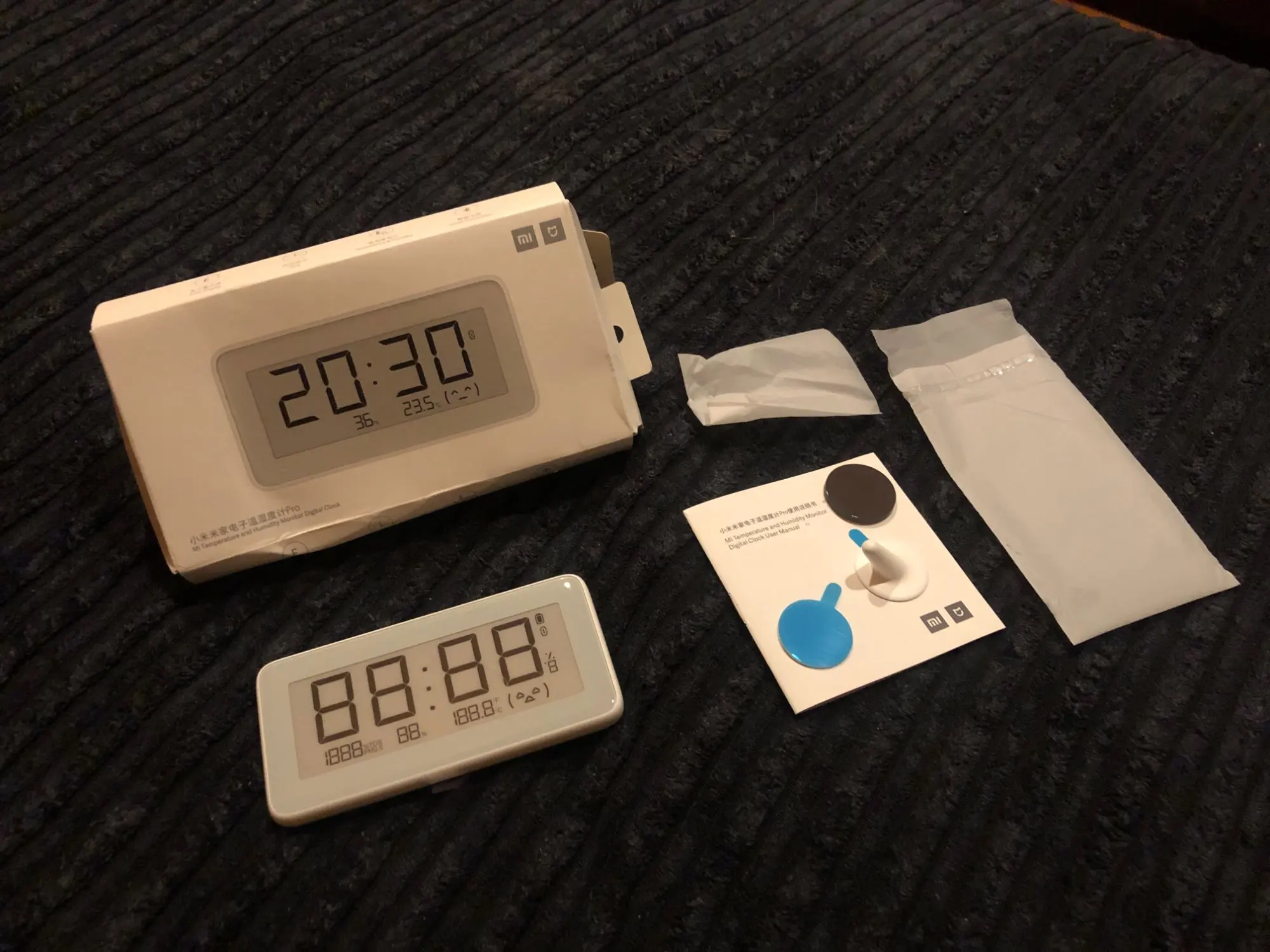 прикольный девайс, время температура влажность, все точно показывает, приятные на вид, е-ink экран. В комплекте несколько креплений, включая магнит и маленькую ножку. Повесил на холодильник. Пришли без батарей, имейте ввиду. Нужны две штуки CR2032. Сопрягаются с mi home, и это полная боль, т.к работают только если выставить регион "Китай", из под российского аккаунта их не видно. Так что если у вас есть устройства от Xiaomi для российского региона (увлажнитель или пылесос например), то подключить в приложение можно будет или то или то. Берите все устройства для одного региона. И кстати, если поставить регион Китай, то половина проги mi home будет в иероглифах.