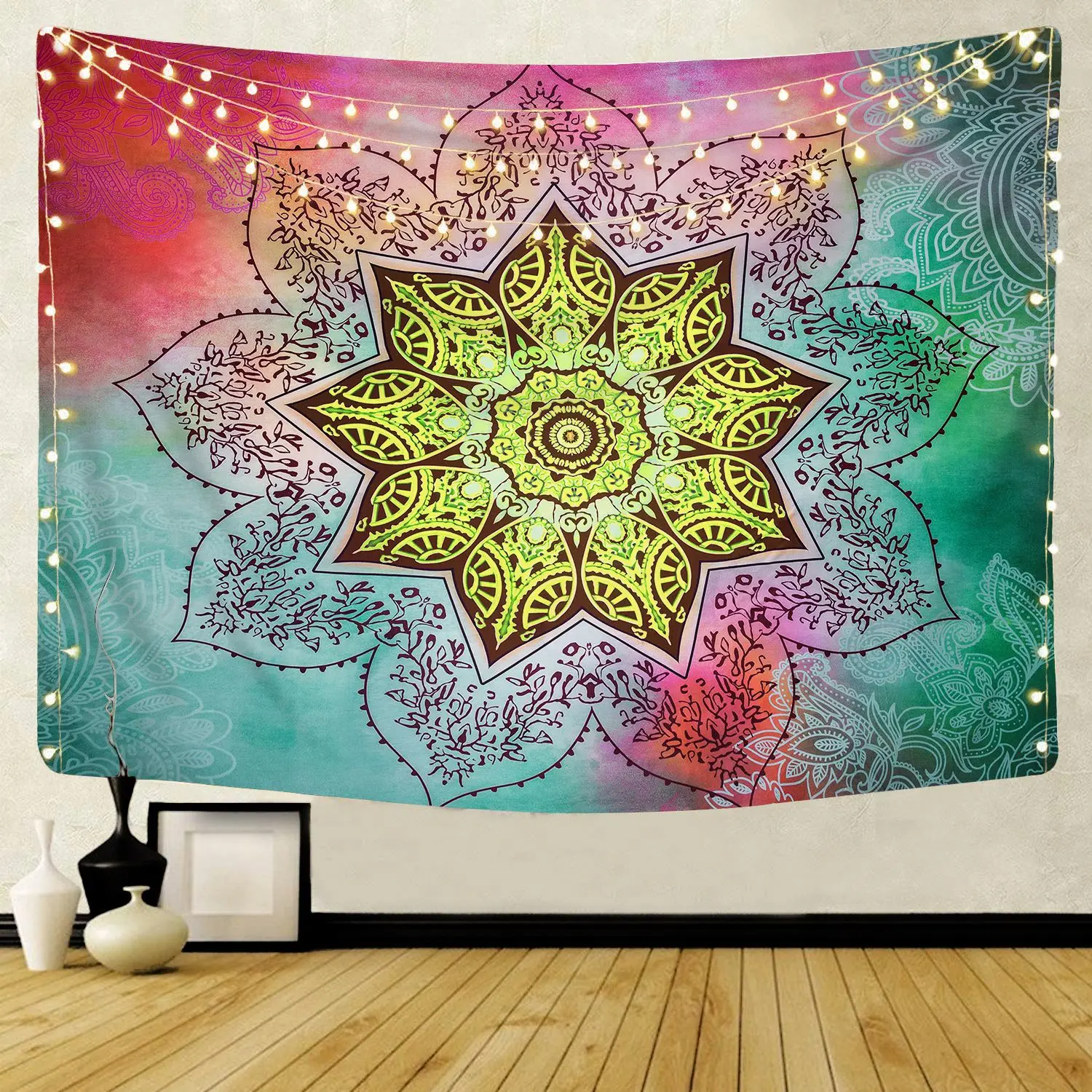 Большой индийский гобелен с узором мандалы, настенное украшение, богемное пляжное полотенце, тонкое полиэстеровое одеяло, шаль для йоги, Дорожный Коврик