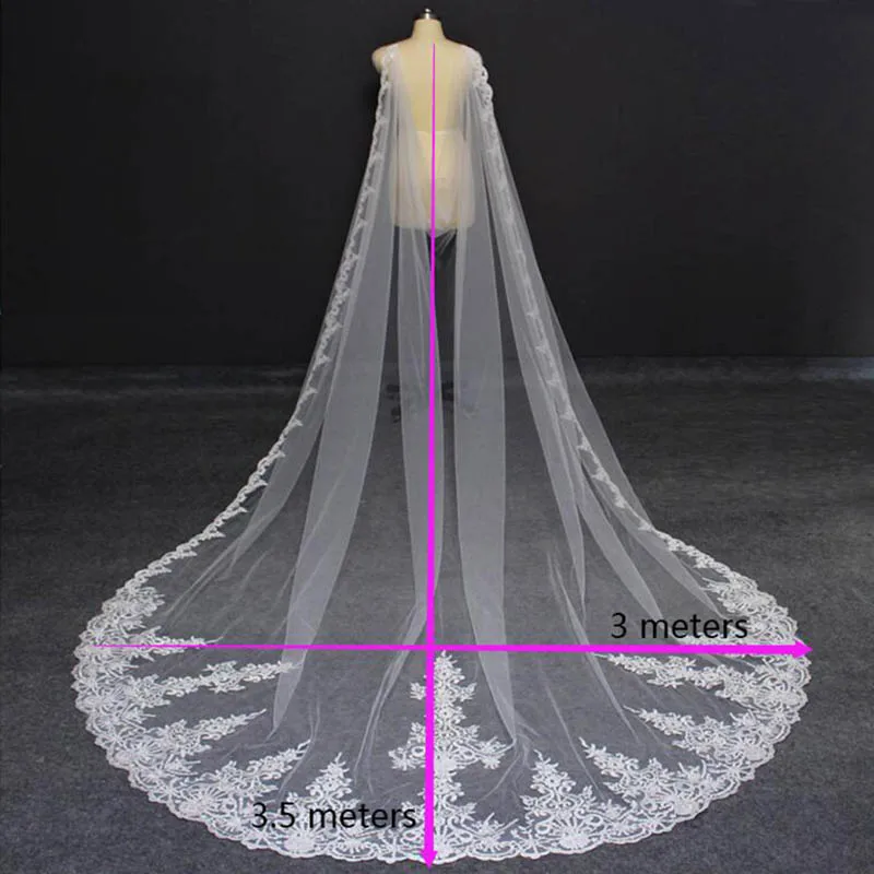 Новый 3,5 метровой сеткой, кружевная Свадебная Фата с расческой 350...