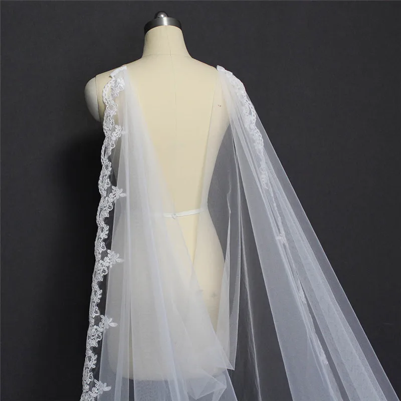 Длинные Кружевные Свадебные вуали 3 м длинная белая цвета слоновой ...
