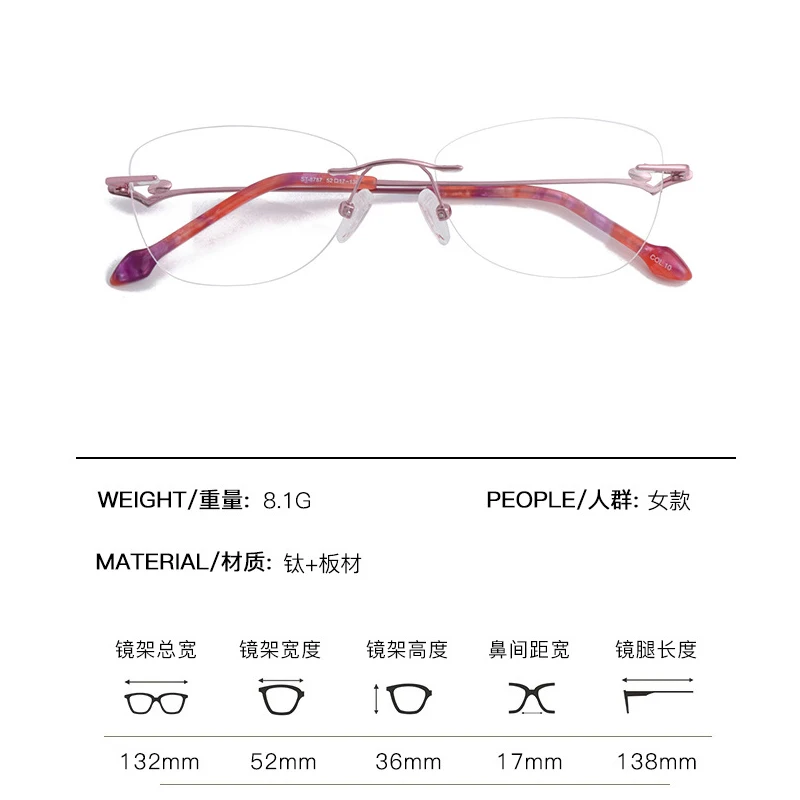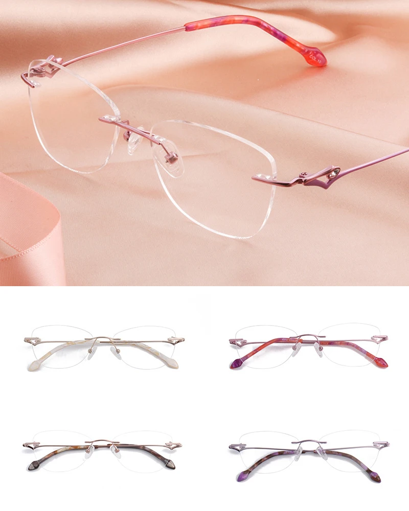Оправа для очков женская, кошачий глаз, без оправы, из чистого титана