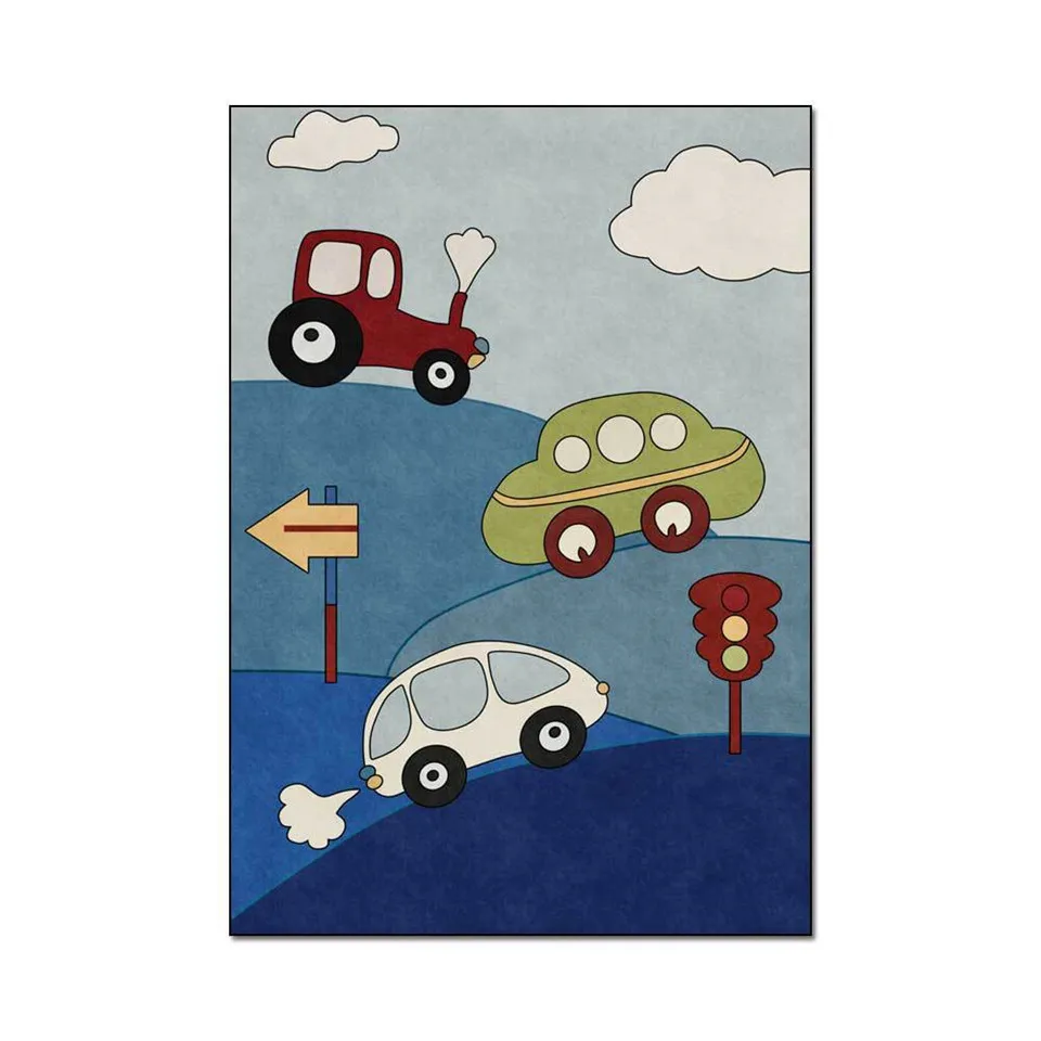 Современный мультяшный милый синий коврик Автомобиль для детской комнаты, прикроватный коврик для мальчиков, нескользящий, машинный моющийся игровой коврик для детской комнаты