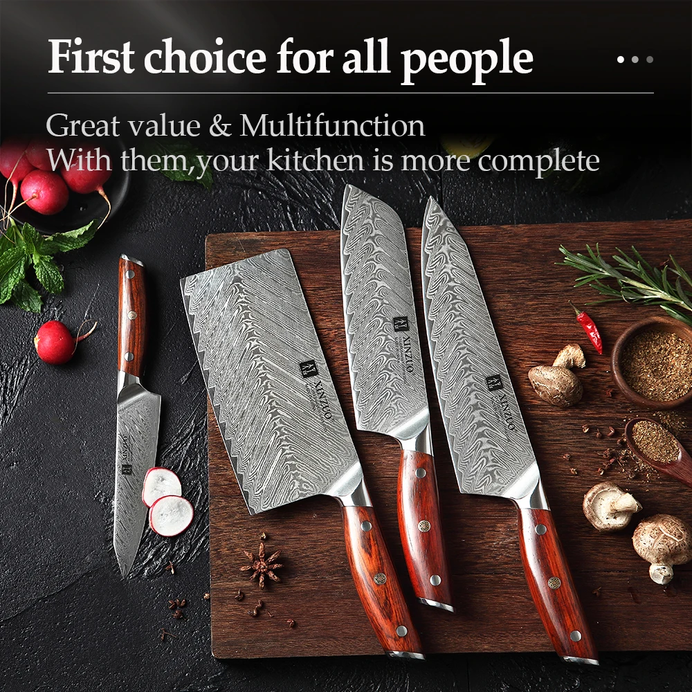 Кухонный нож XINZUO, Многофункциональный кухонный прибор из дамасск...