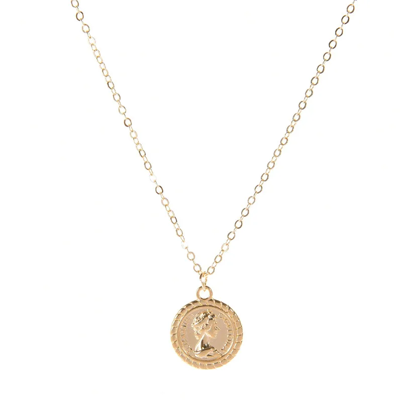 Женское Ожерелье с кулоном, винтажное ожерелье золотого цвета с подвеской в виде монеты и королевы, массивное Ювелирное Украшение