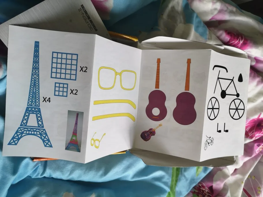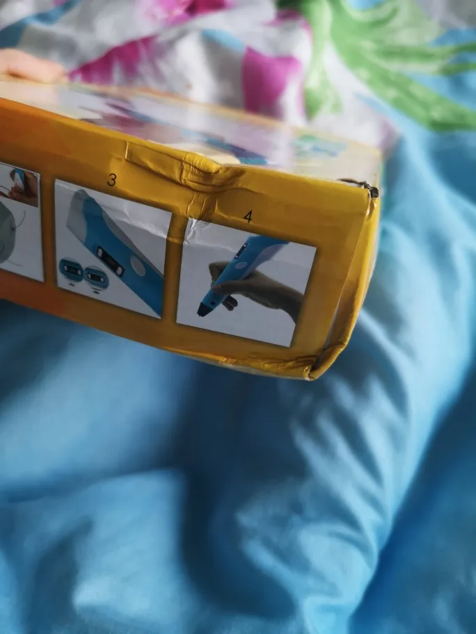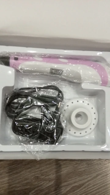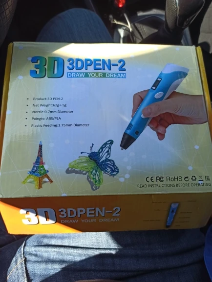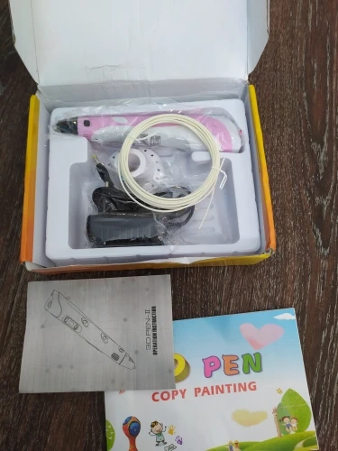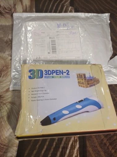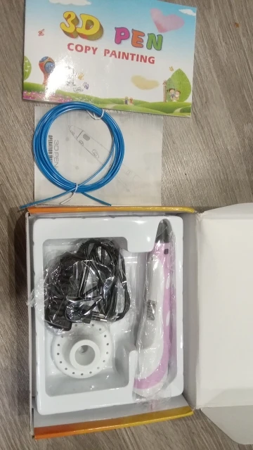 Коробка пришла мятая, но с товаром всё хорошо. Ручка красивая, в наборе сама ручка, трафарет для рисования, инструкция и 1 шт. PLA нить. Товар достался за 1 цент и монетки. В работе ещё не пробовали. В общем я довольна)