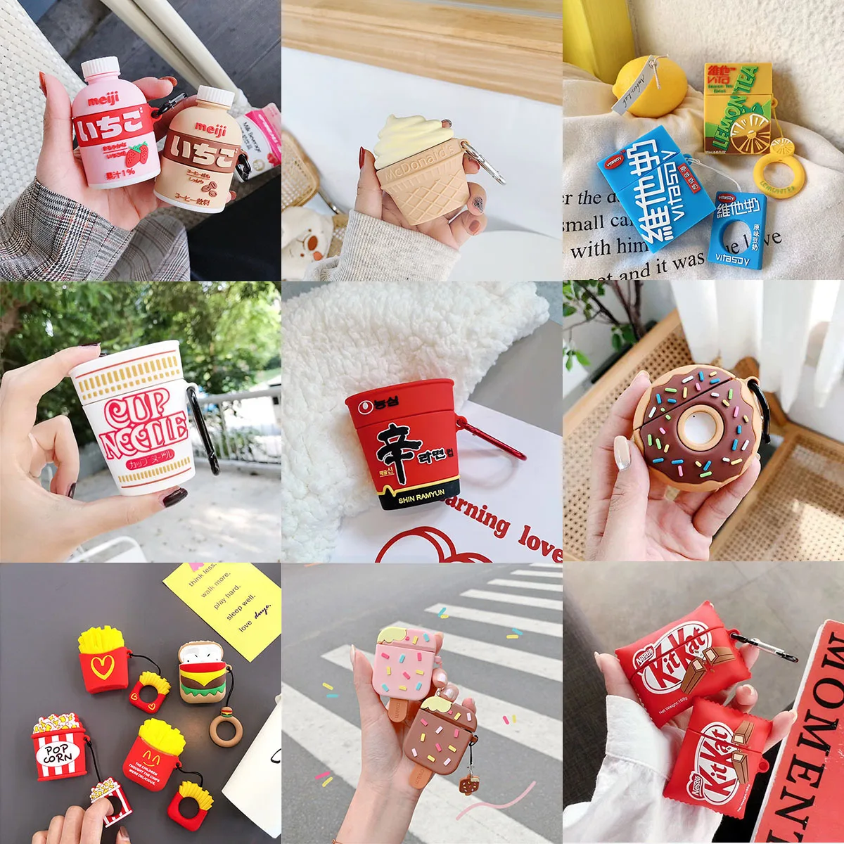 Чехол для AirPods 2 1, 3D мультяшный силиконовый чехол с рисунком еды, напитка, мороженого, чехол для телефона, чехол с зарядным устройством для Air Pods