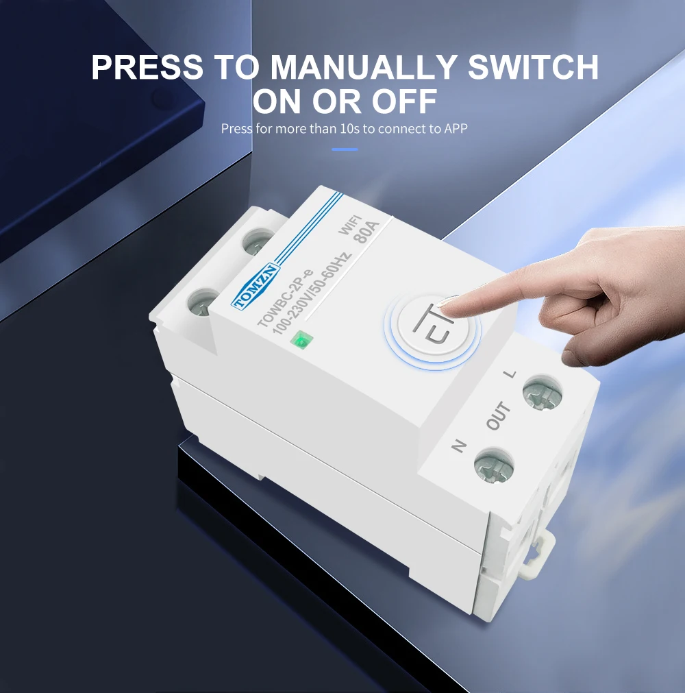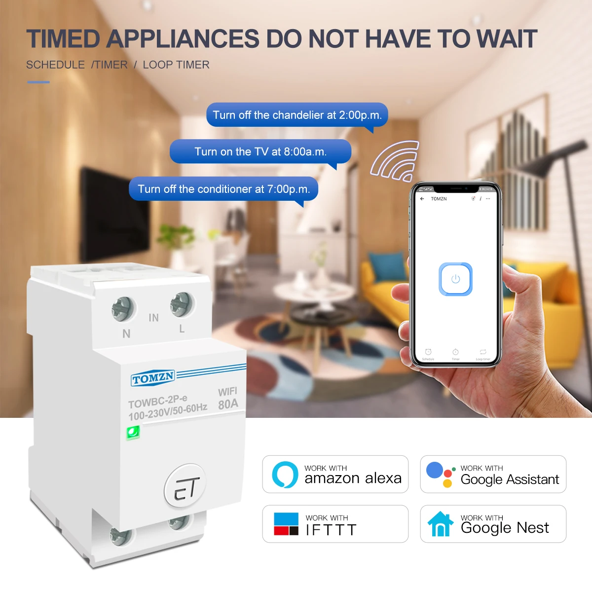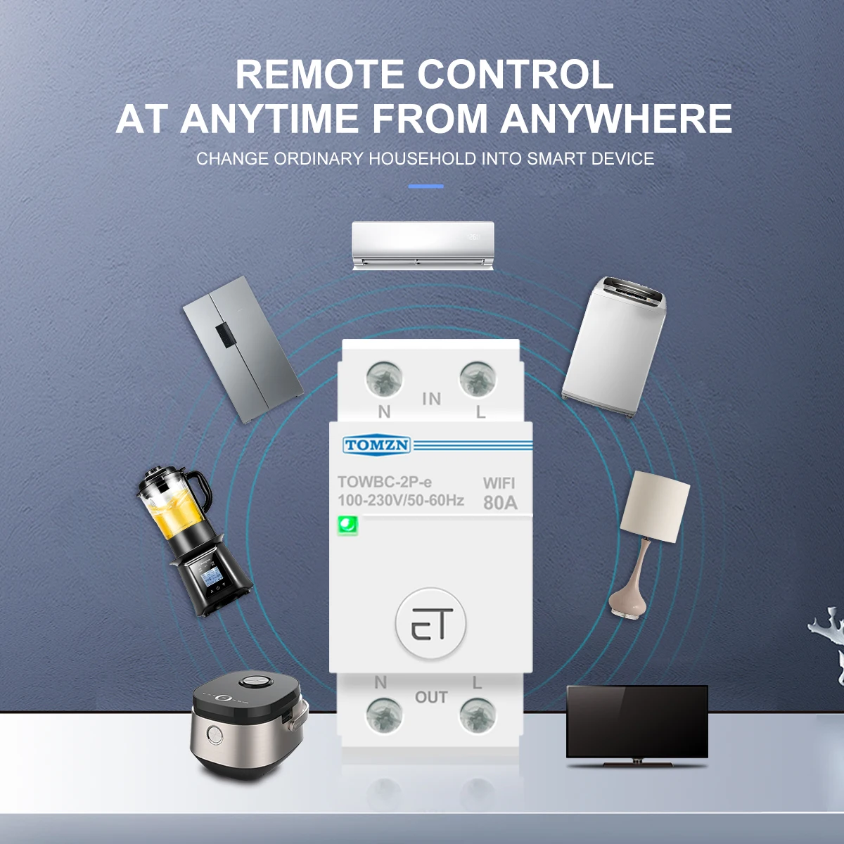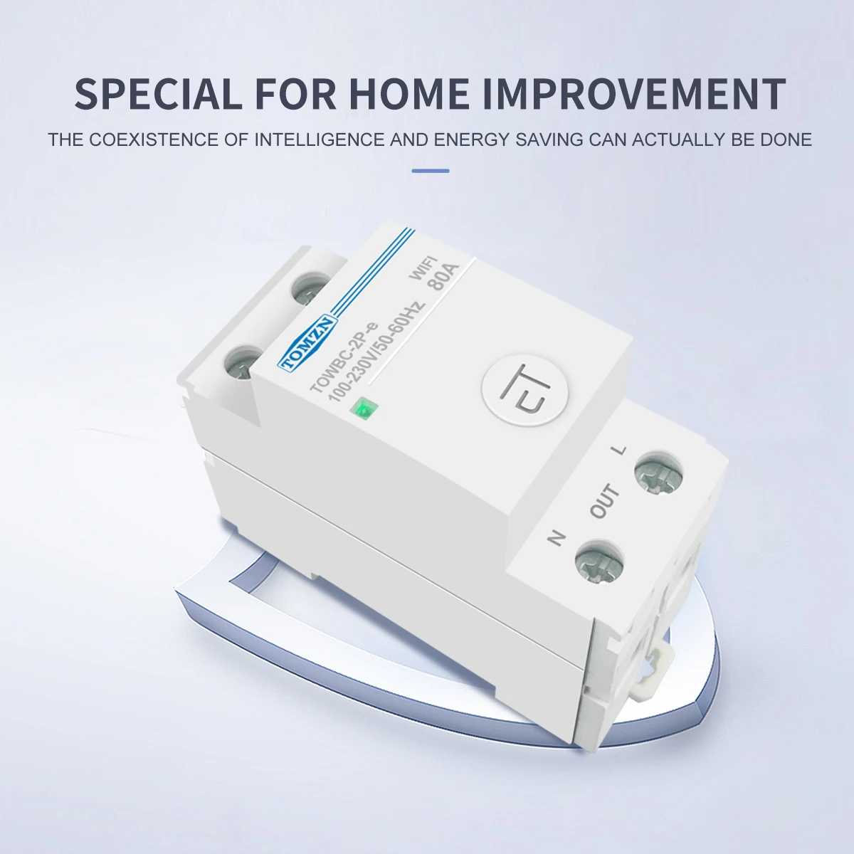 Автоматический выключатель TOMZN MCB, однофазный автоматический выключатель на Din-рейку, Wi-Fi, дистанционное управление с помощью приложения Ewelink, для умного дома, 63 А, 80 А