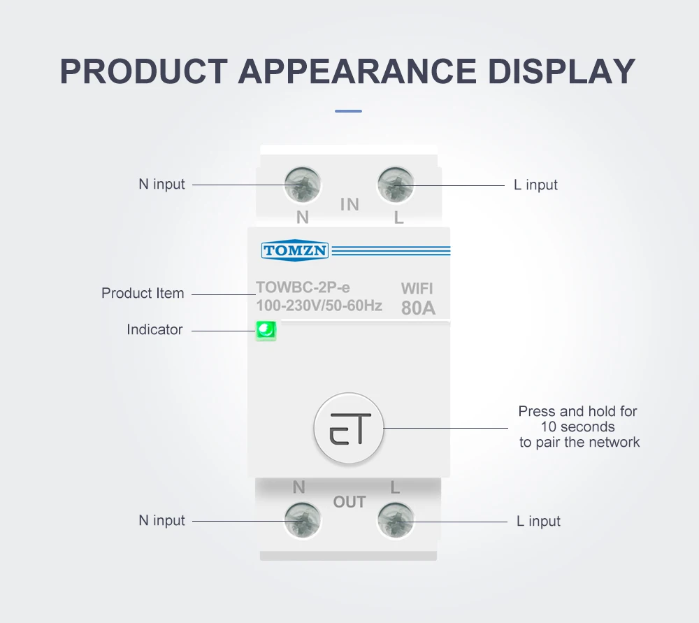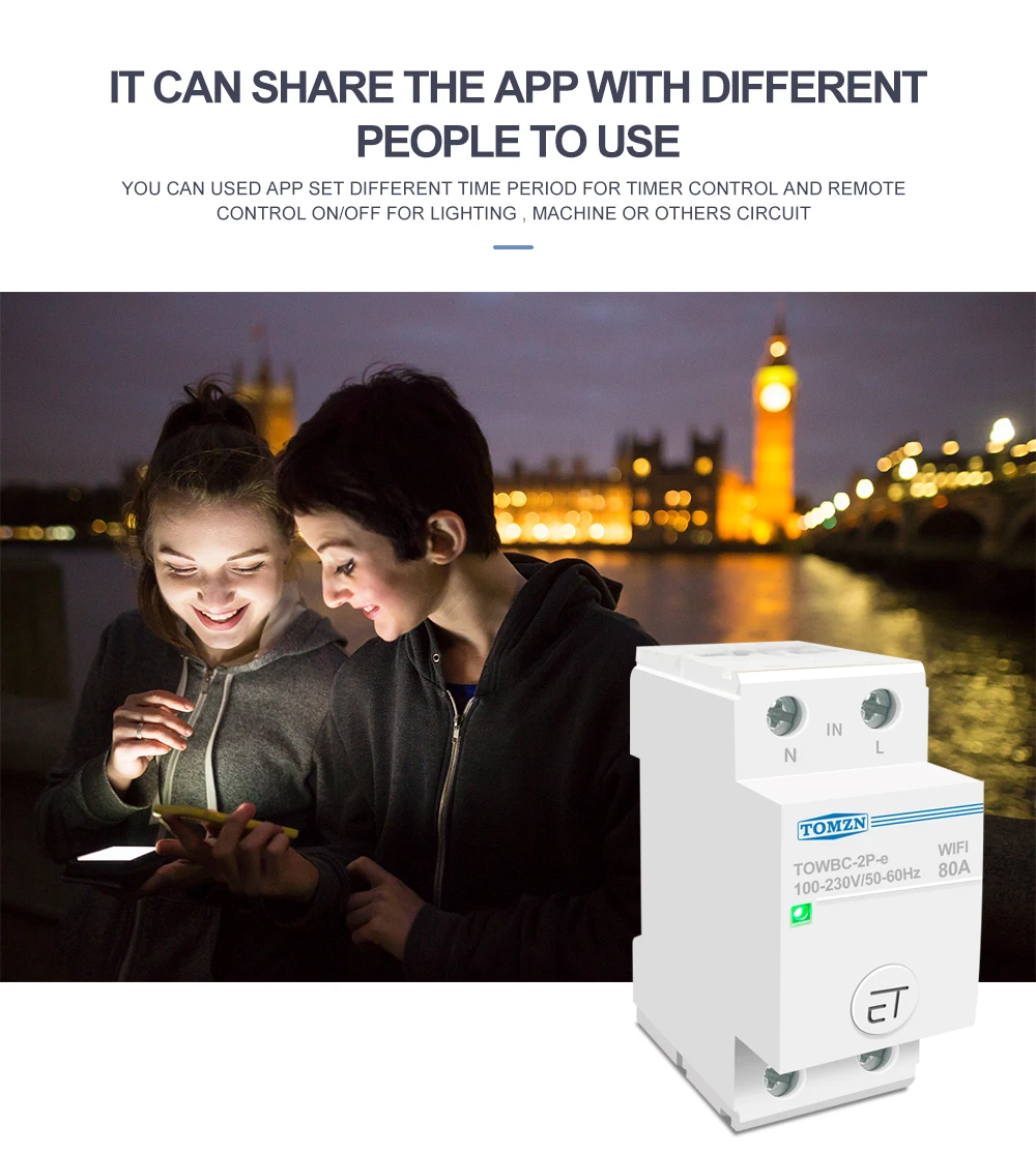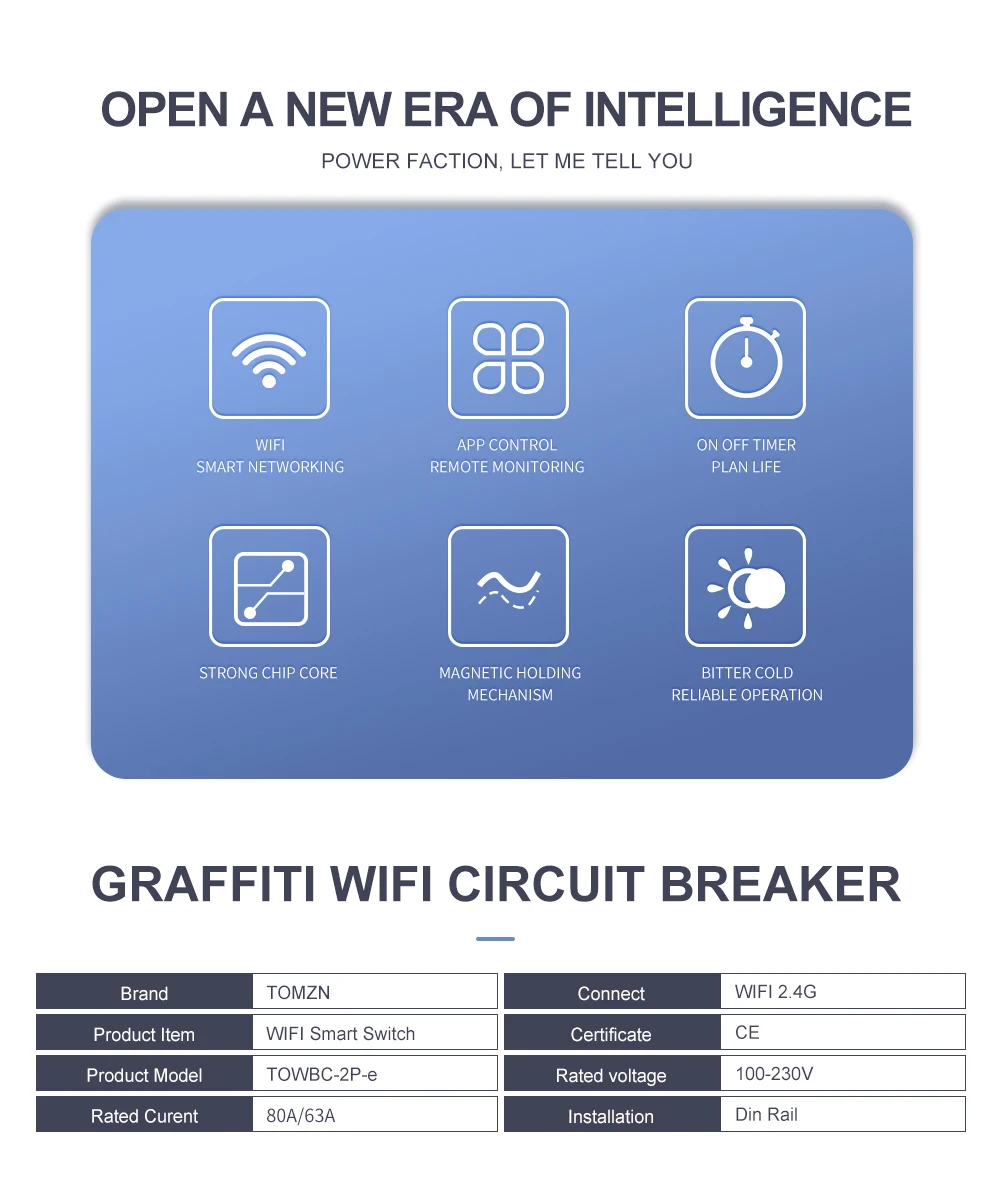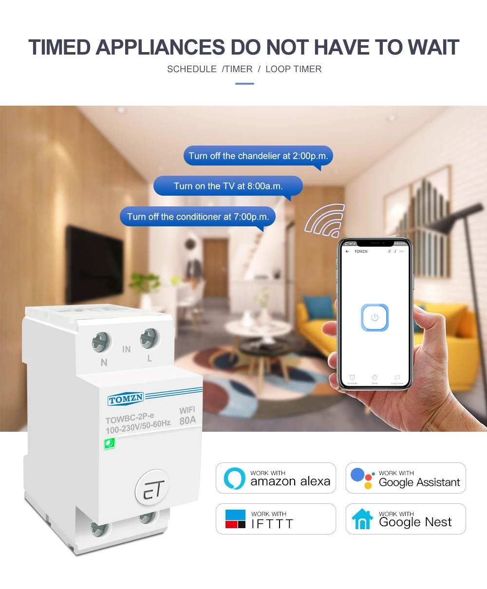 Автоматический выключатель TOMZN MCB, однофазный автоматический выключатель на Din-рейку, Wi-Fi, дистанционное управление с помощью приложения Ewelink, для умного дома, 63 А, 80 А
