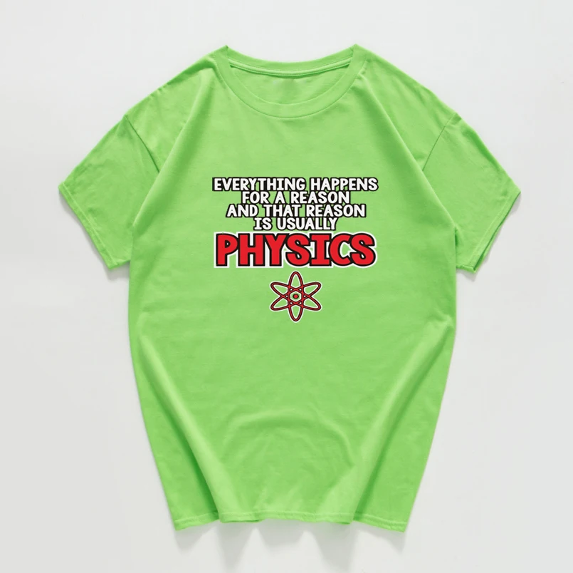 Все происходит по причине физики, науки, графика, забавная футболка для женщин, хлопок, эстетические топы, уличная одежда для женщин