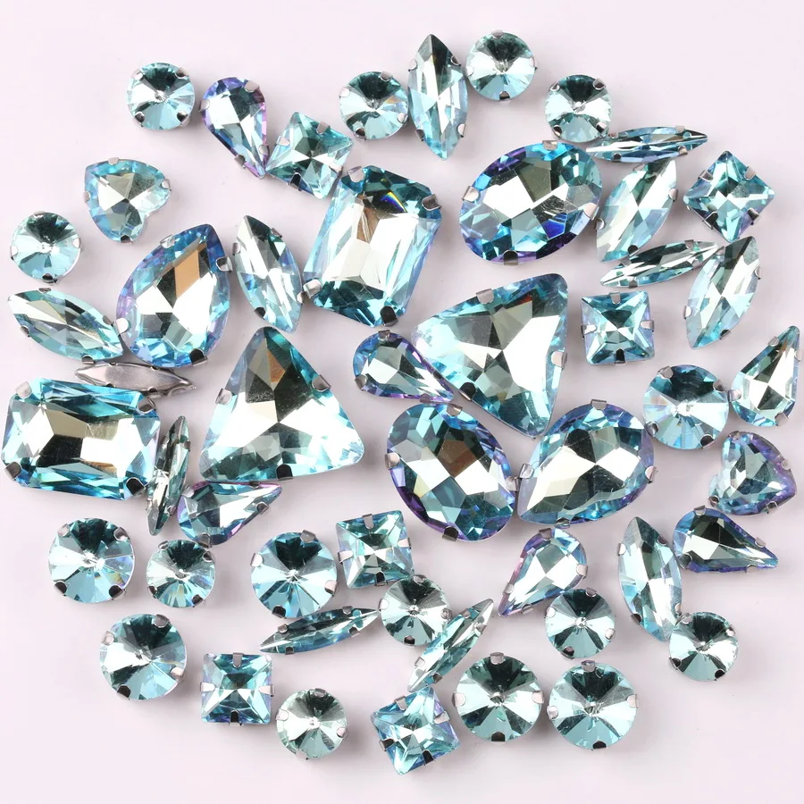 Серебряные оправы в виде когтей, 50 фотоформ, Микс аквамаринового радужного стекла, Стразы для шитья, свадебные туфли, сумки, отделка сделай сам
