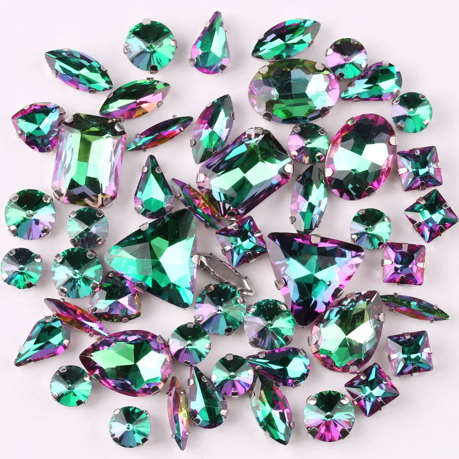 Серебряные очки, 50 цветов, изумрудное радужное стекло, Стразы для шитья свадебных платьев, обуви, украшения сделай сам