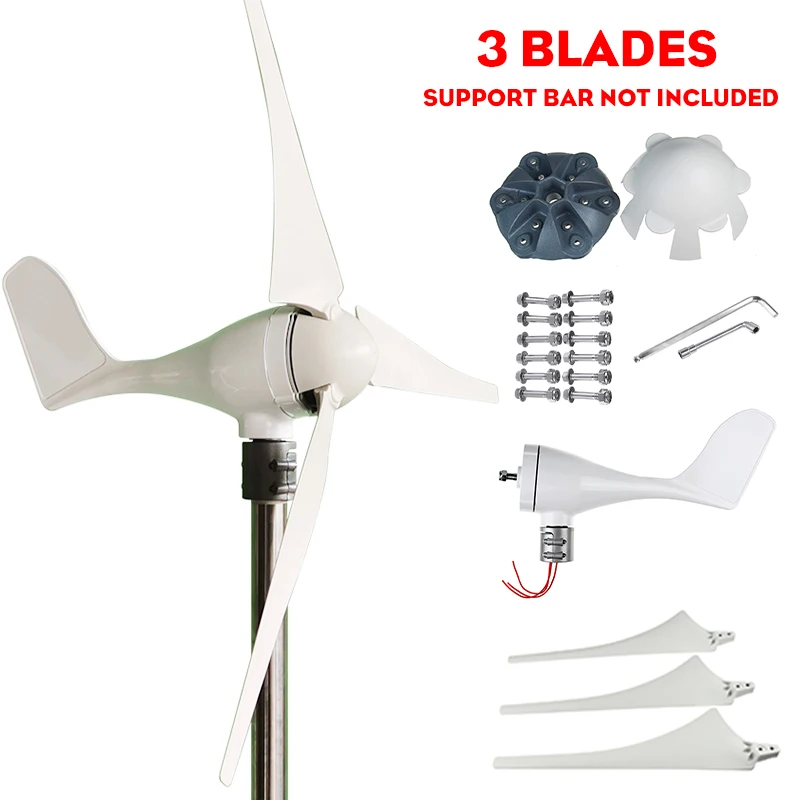 Посылка включает в себя:1 комплект ветряных турбинОсобенности:-Автоматическая регулировка направления ветра-Высокая скорость преобразования энергии ветра-Высокая устойчивость к ветру-Высокая стоимость-производительность-Низкая вибрация и низкий уровень шумаХарактеристики:Номинальная мощность: 6000 ВтНапряжение: 12 В/24 ВСкорость запуска ветра: 2 м/сНоминальная скорость ветра: 11,5 м/сБезопасная скорость ветра: 55 м/сДиаметр ветрового колеса: 1,35 мНомер лезвия: 3/5/6 (опционально)Материал лезвия: нейлоновое волокноМатериал салона: нейлоновое волокноГенератор: 3 фазы переменного тока PMGРегулировка направления ветра: автоматическая регулировкаРабочая температура: -40 ℃-80 ℃