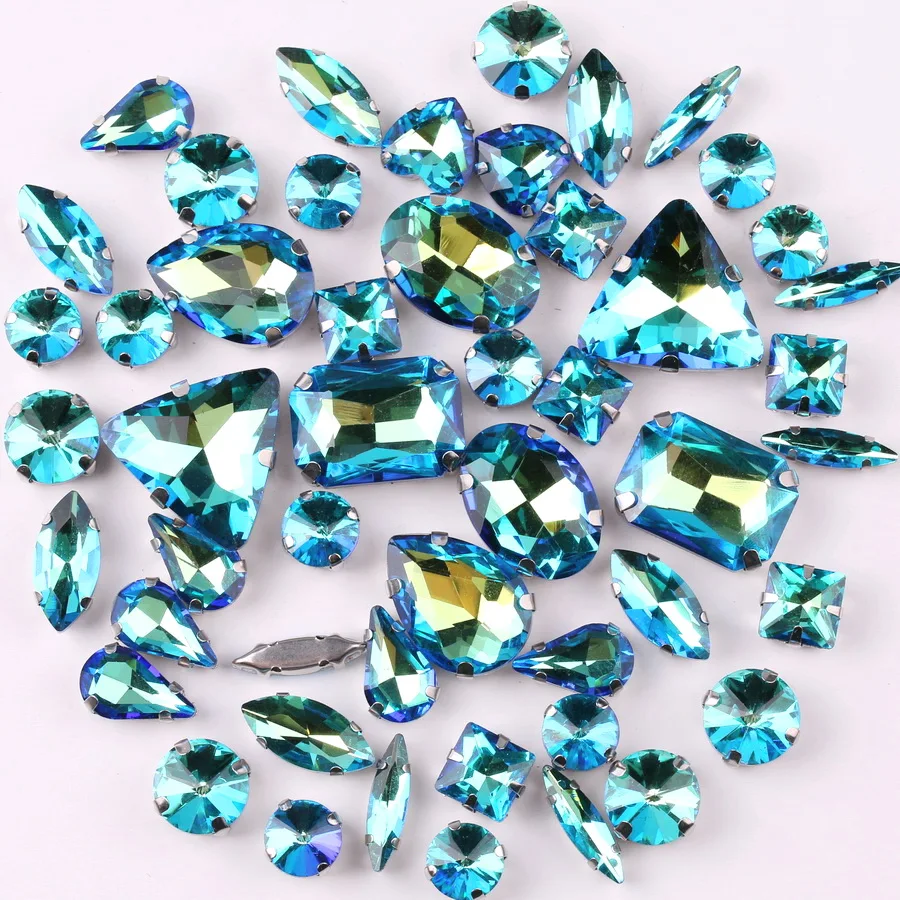 Серебряные оправы в форме когтей 50 фотоформ mix Lt сапфировое радужное стекло кристалл пришивные стразы свадебное платье обувь сумки diy отделка