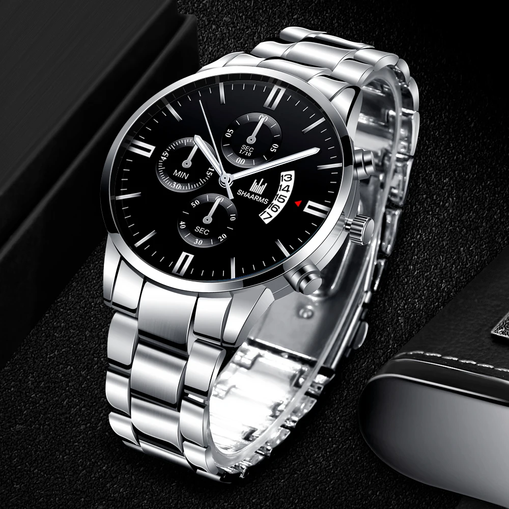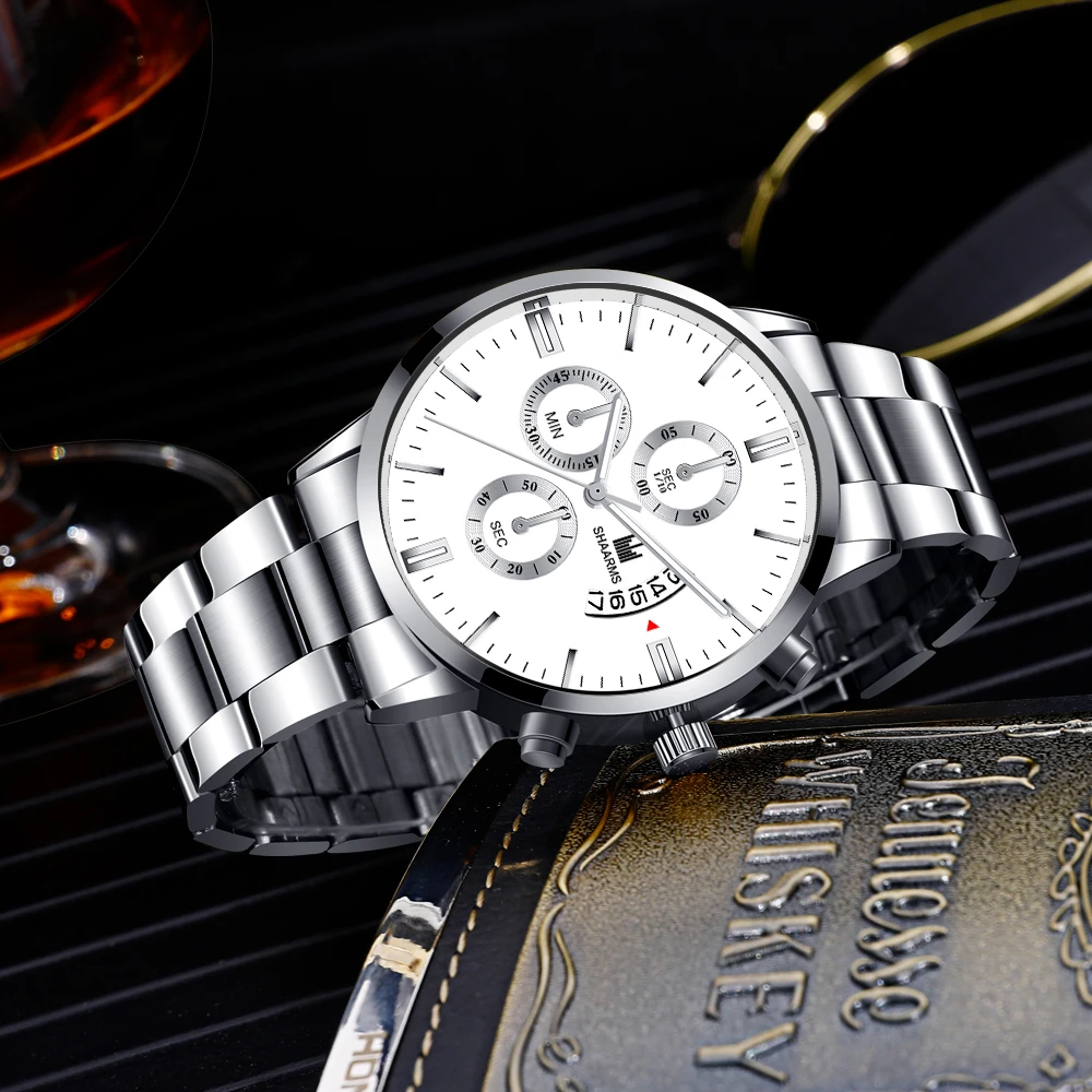 2020 роскошные мужские военные Бизнес Кварцевые часы золотые часы из нержавеющей стали с ремешком Мужские часы Дата Календарь Мужские часы Relogio прямые