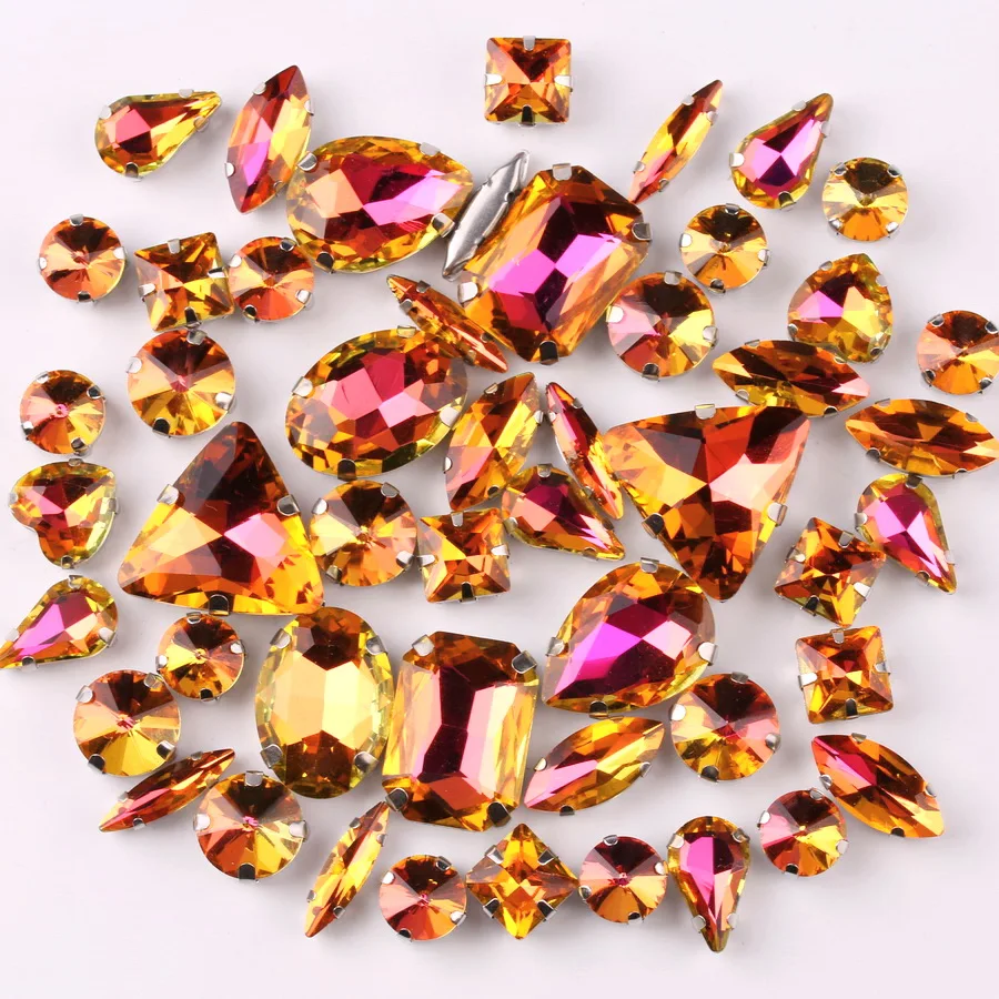 Серебряные оправы в виде когтей, 50 фотоформ, смешанные желтые радужные стеклянные кристаллы, пришивные стразы, свадебные туфли, сумки, отделка сделай сам