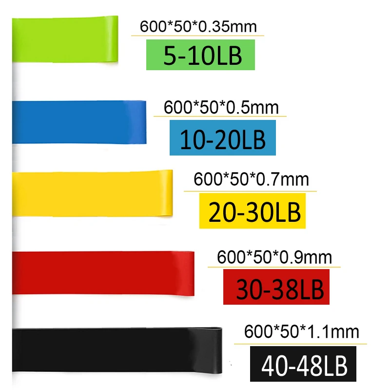 Резинки для фитнеса, йоги, 5 шт.лот, 0,35-1,1 мм