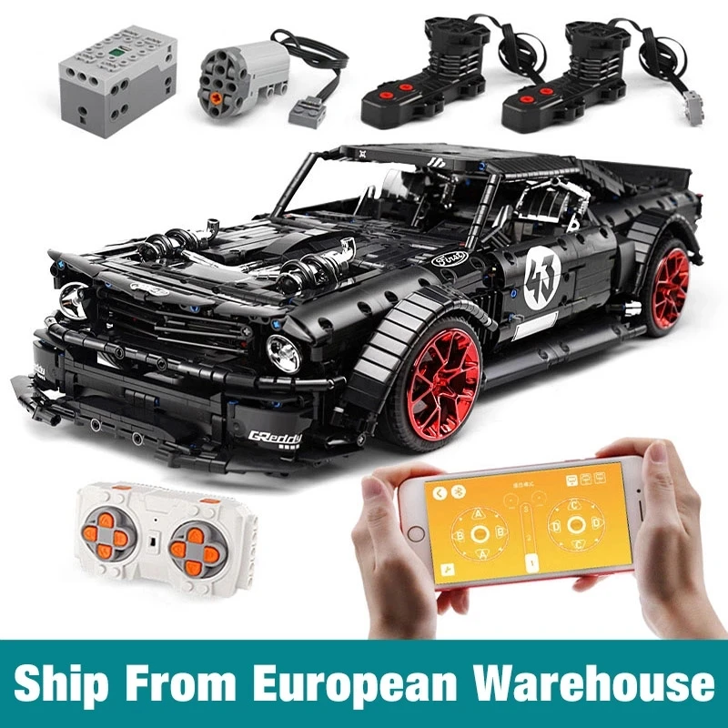 Mold King 13108 APP модель автомобиля, совместимая с планкой, Mustang Hoonicorn с функцией двигателя, автомобильные строительные блоки, кирпичи, детские игрушки