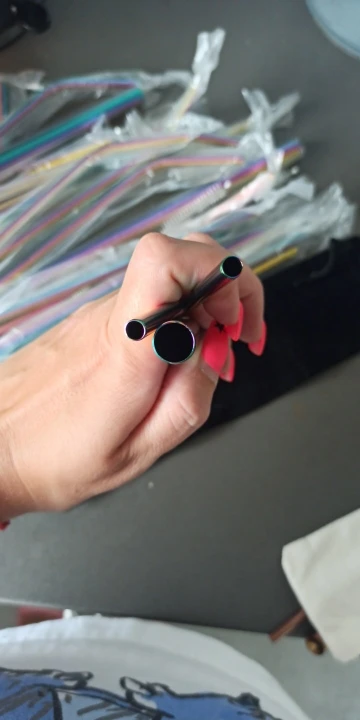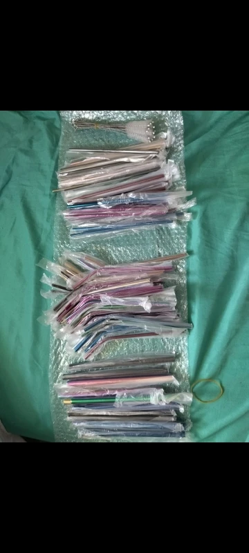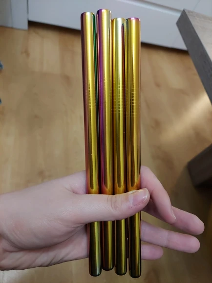 Заказ 20 сентября и товары прибыли 1 октября. Хорошие, тяжелые и прочные соломинки, не совсем уверены в материале, но давайте просто проверим, есть ли какой-либо «цвет» выцветает вовремя, тогда мы узнаем об этом. Последняя фотография-это сравнение между обычной пластиковой соломой boba и металлической трубой.