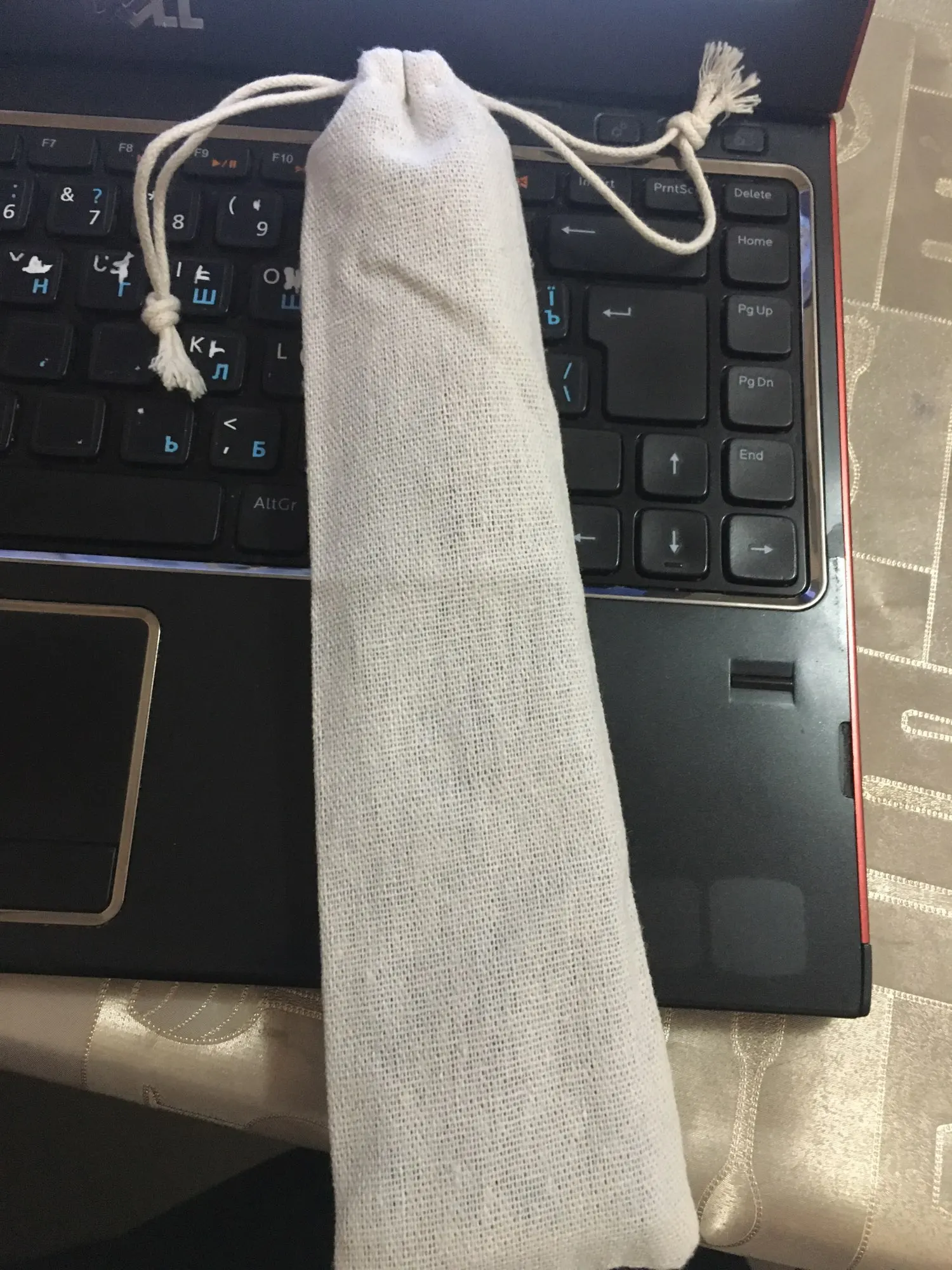 Товар пришел быстро и отслеживался в пути, т.к. шел с другой посылкой. Качество мешочка и завязок хорошее, не торчат нитки. Трубочки отлично поместились.