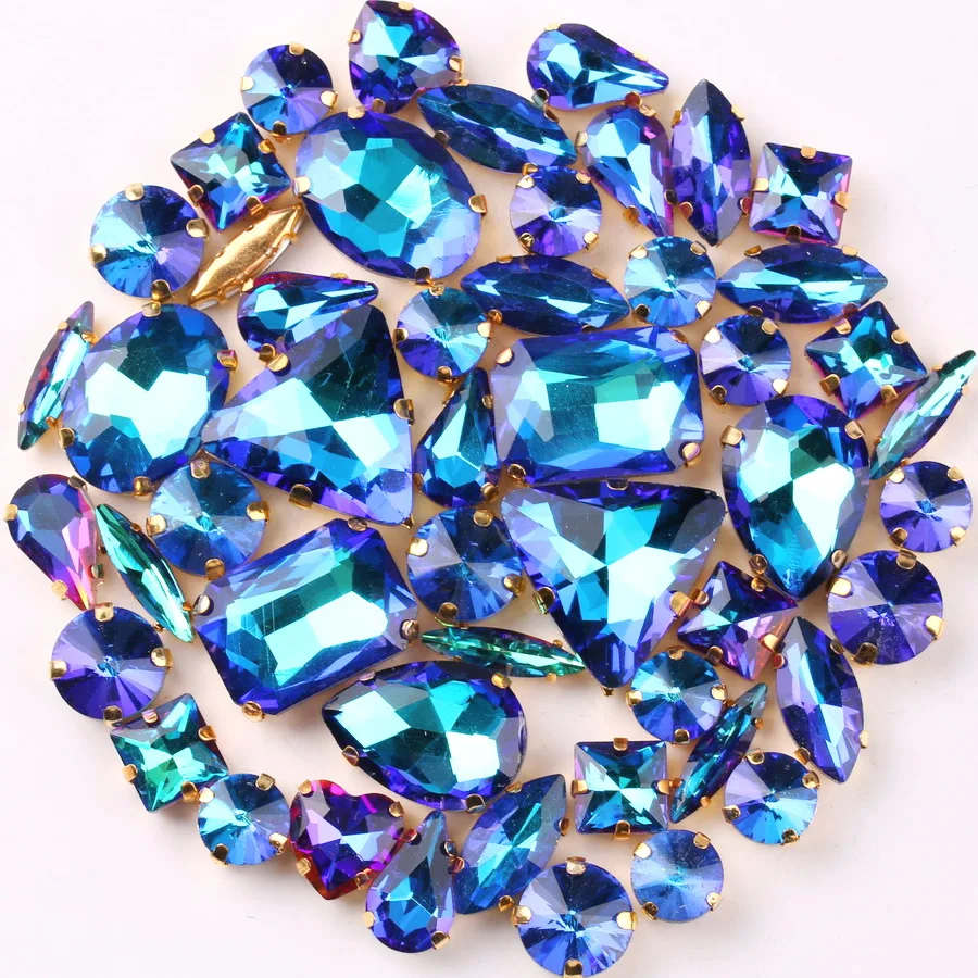 Золотые очки, 50 цветов, разные формы, смешанные сапфировые радужные стеклянные кристаллы, пришивные стразы, одежда, обувь, сумки, отделка сделай сам