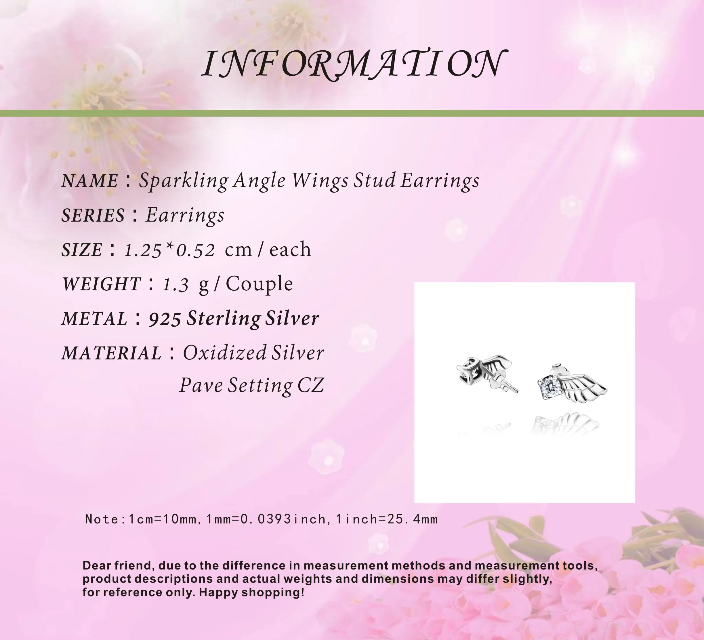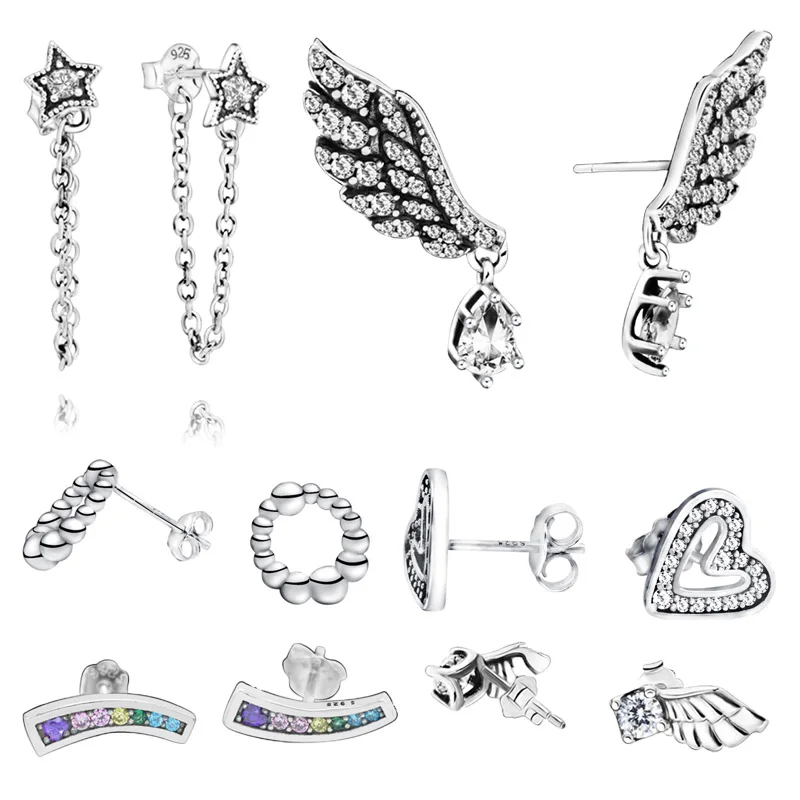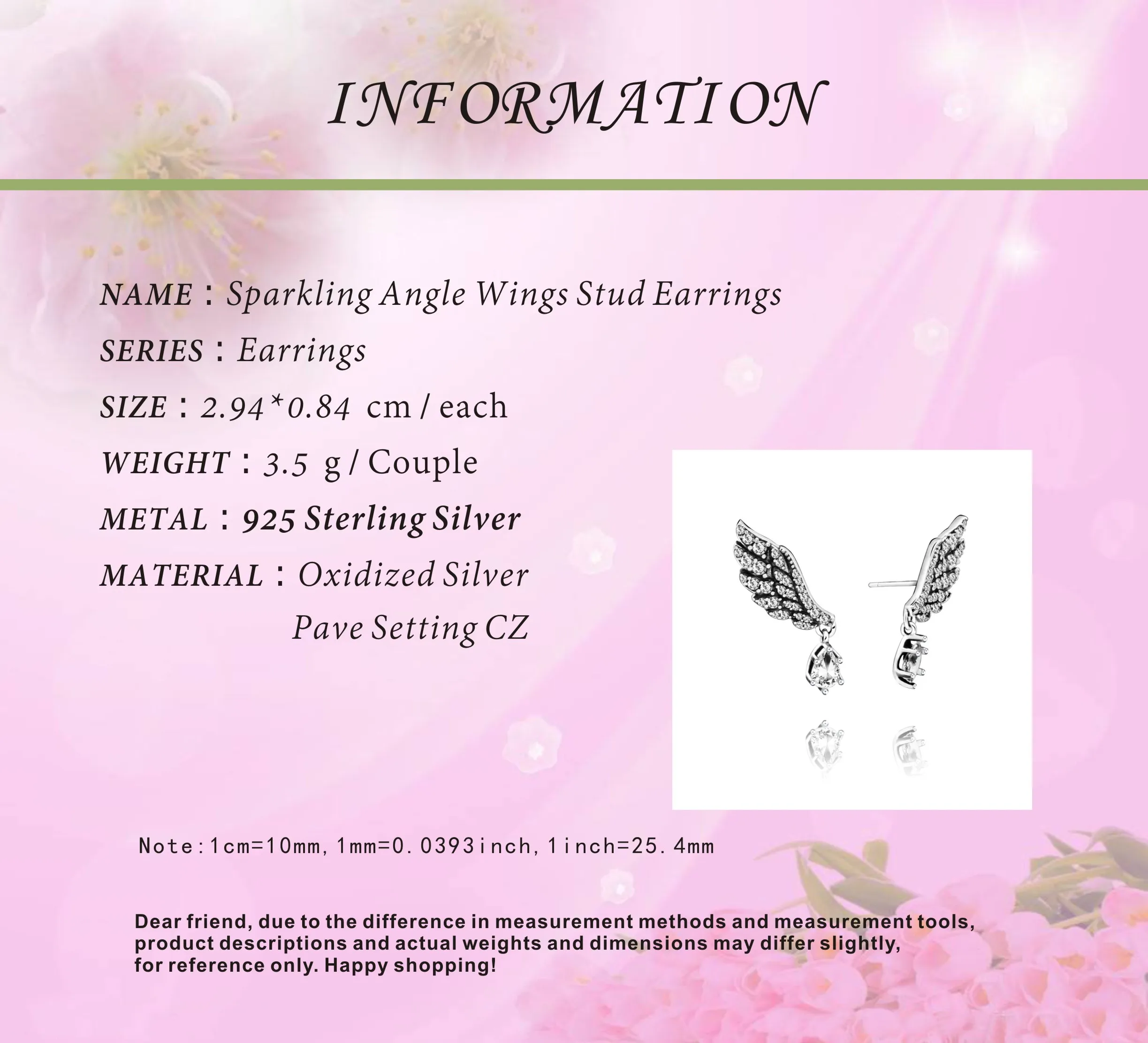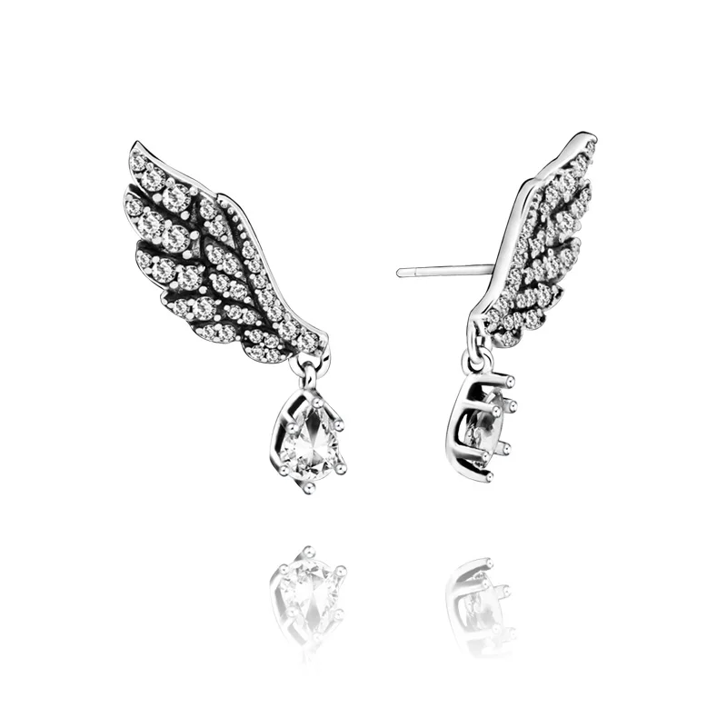 Модные 100% 925 стерлингового серебра серьги сверкающие украшением в виде крыльев Ангела; Серьги-гвоздики и серьги в наборе из стерлингового серебра ювелирные изделия, подарок на день рождения