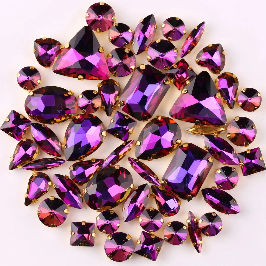 Золотистые лапки, 50 шт.пакет, разные формы, аметист, радужное стекло, кристаллы, пришитые стразы, сумки для одежды, обувь, сделай сам, отделка