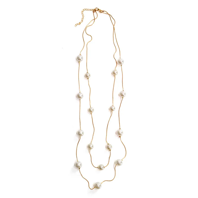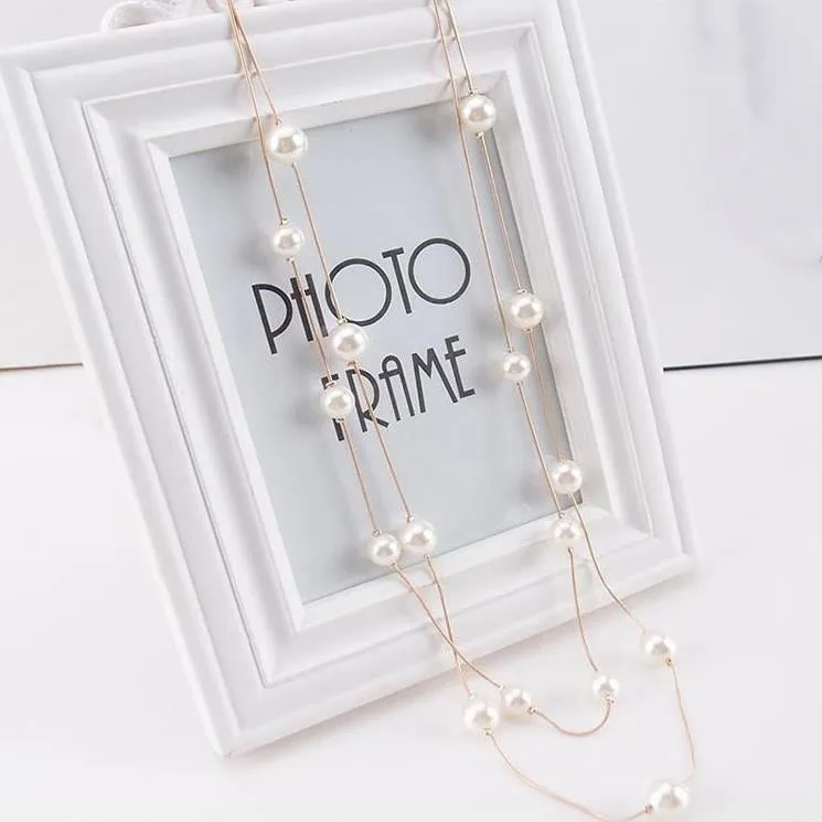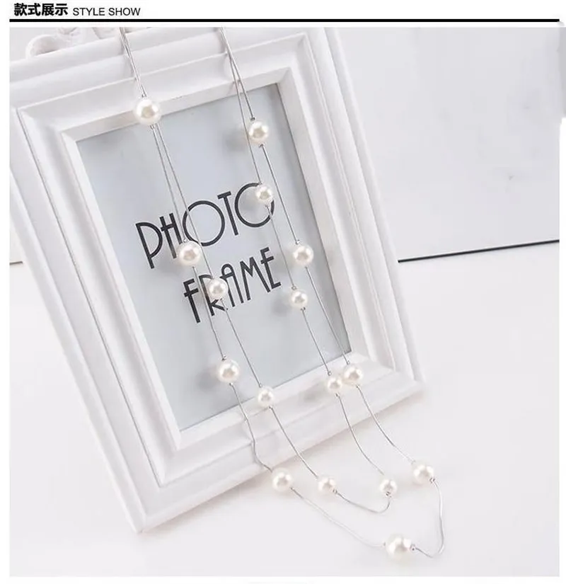 Новинка 2020, длинное Двухслойное ожерелье из искусственного жемчуга, женское ожерелье на цепочке для свитера, женские ожерелья, крупные украшения, оптовая продажа