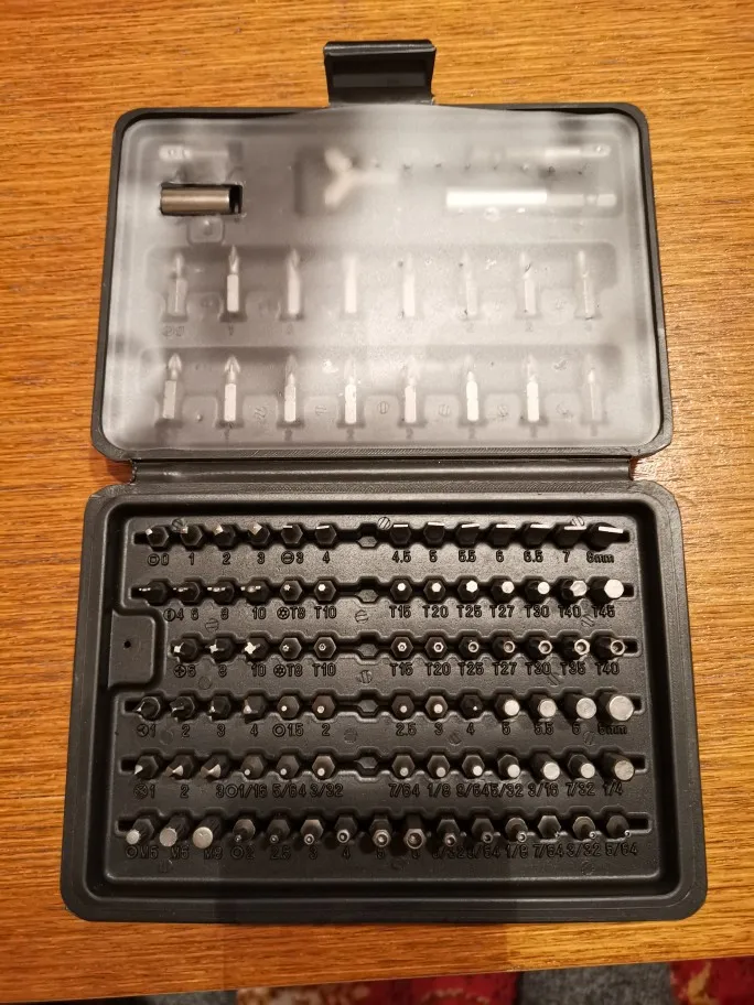 Доставлен очень быстро, это хорошо. Одна бита перепутана Т20 с отверстием отсутствует, а вместо нее V6, которая уже есть. Это плохо.