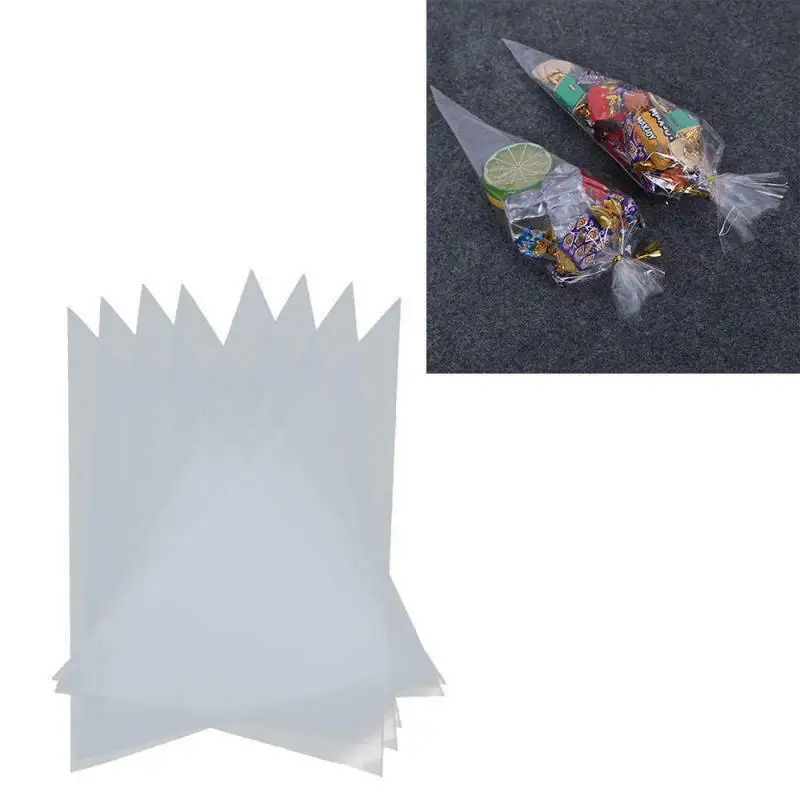 100 шт. упаковочные принадлежности, конус, подарок на день рождения, прозрачный целлофановый упаковочный пакет, экологически чистый кухонный пластиковый пакет для еды